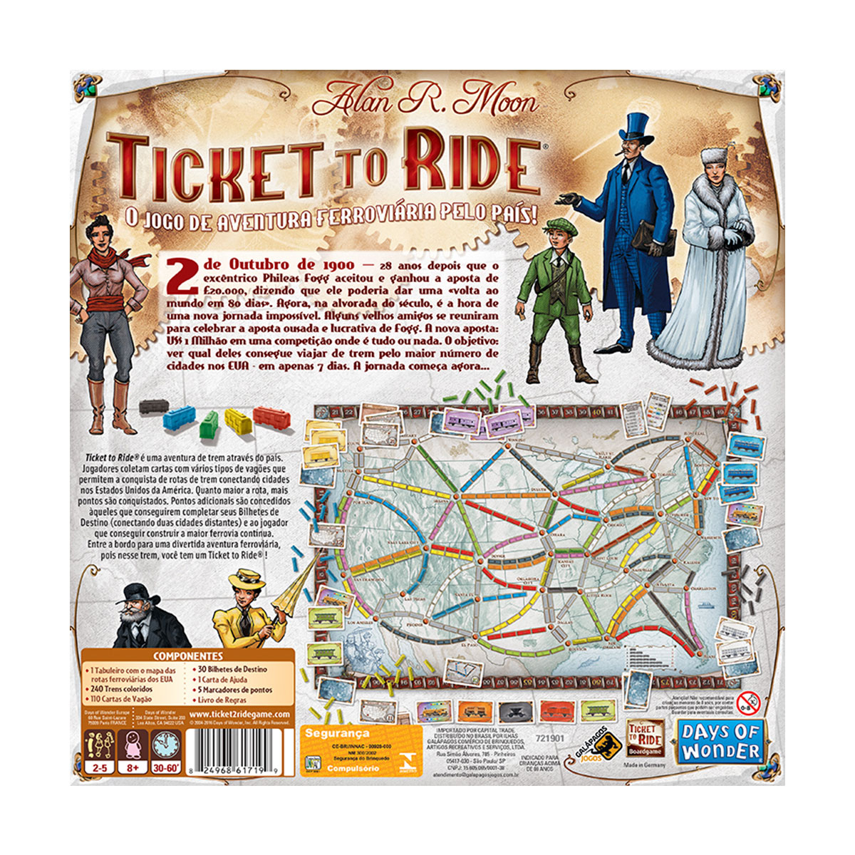 Com uma jogabilidade elegante, Ticket to Ride pode ser aprendido em 3 minutos, enquanto provê aos jogadores estratégia e decisões táticas todo turno. Jogadores compram cartas de vários tipos de vagões, que devem ser usadas para reivindicar rotas de trens na América do Norte. Quanto maiores as rotas, mais pontos elas valem. Pontos adicionais são dados aqueles que completam os Bilhetes de Destino que conectam as cidades. E o jogador que construir a rota continua mais longa, também ganhara pontos de bônus.