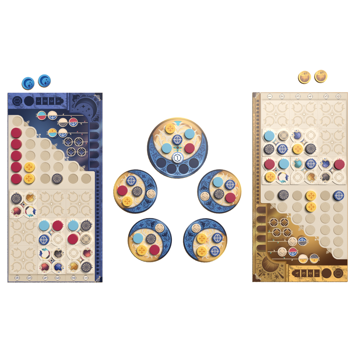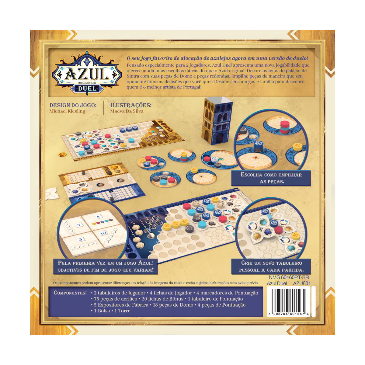 Pensado especialmente para 2 jogadores, Azul Duel apresenta uma nova jogabilidade que oferece ainda mais escolhas táticas do que o Azul original. Decore os tetos do palácio de Sintra com suas peças de Domo e peças redondas. Empilhe peças de maneira que seu oponente tome as decisões que você quer.
