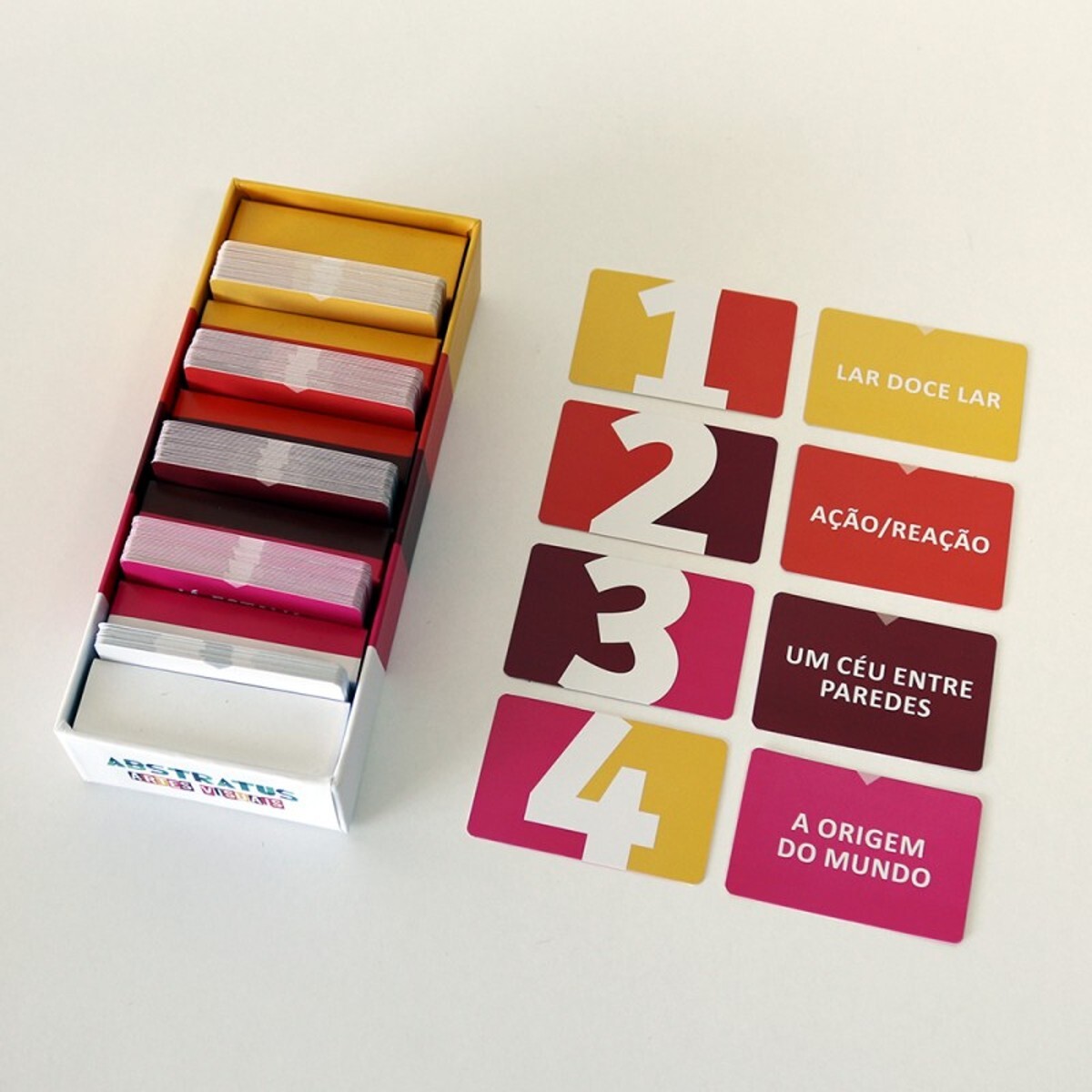 Os quatro grupos de cartas trazem no total 144 nomes de trabalhos de 78 artistas visuais do Brasil, divididos em 4 níveis de dificuldade.