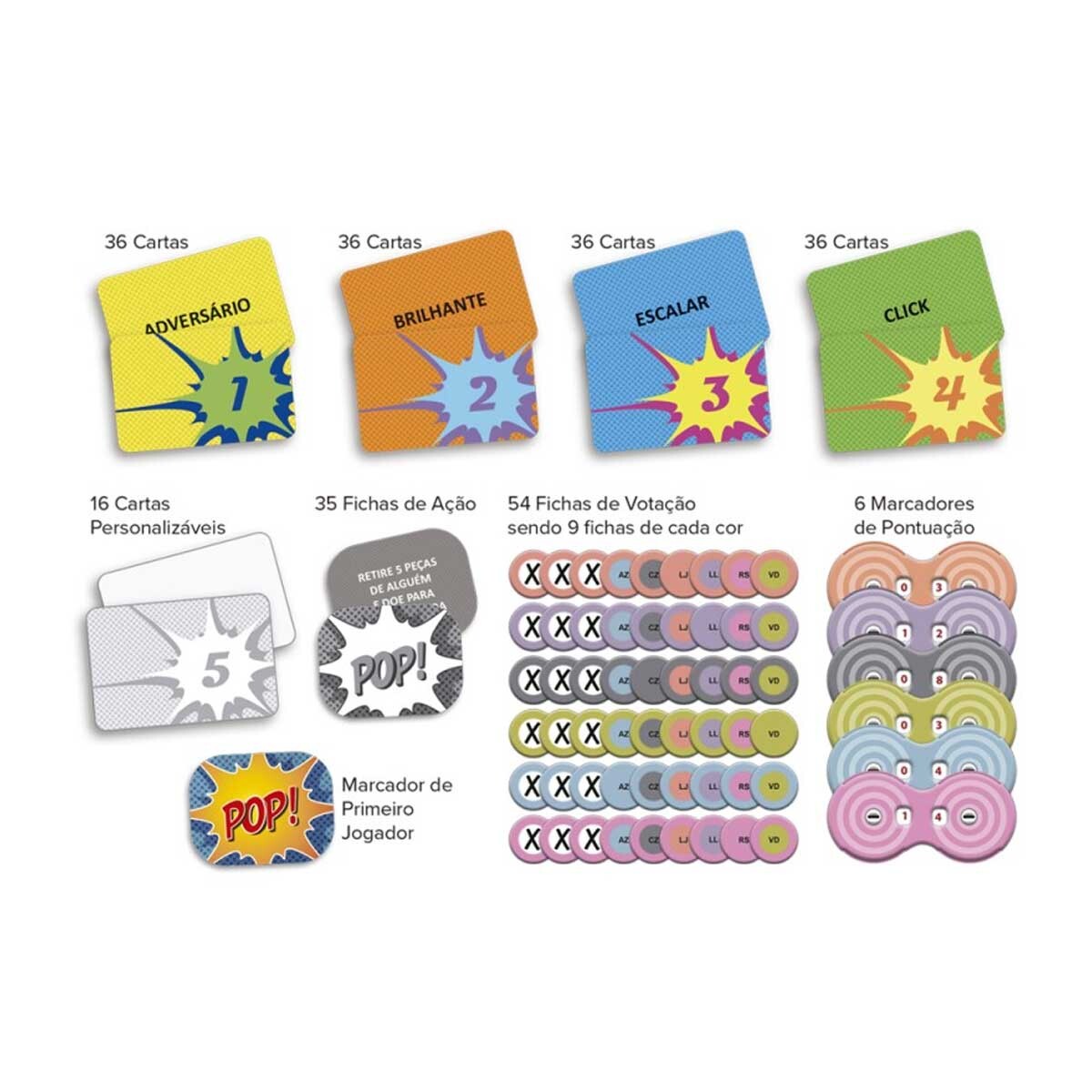 Em Abstratus Pop, os jogadores devem representar suas palavras secretas através de esculturas usando peças coloridas, transparentes e espelhos.