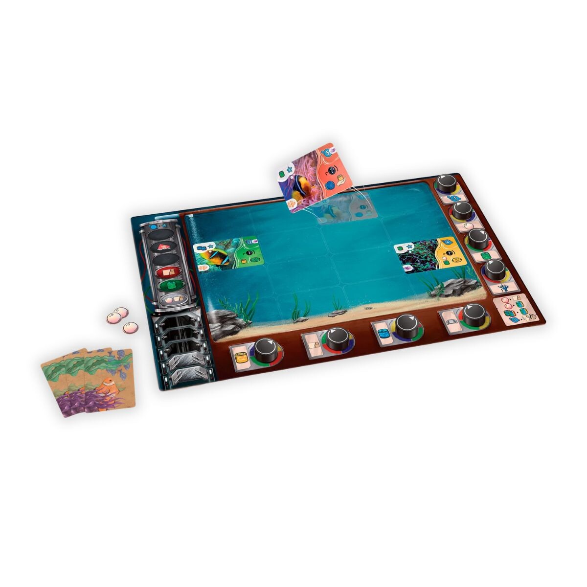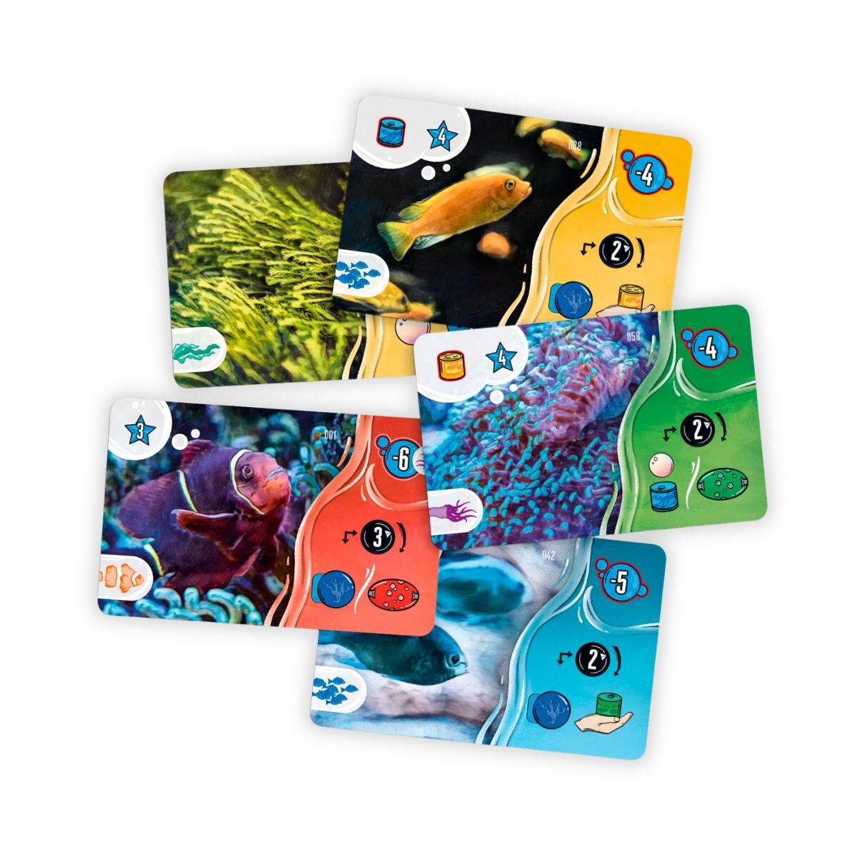 Tudo isso com lindas cartas cheias de espécimes reais e que, ao final da partida, criaram realmente um aquário em seu tabuleiro.