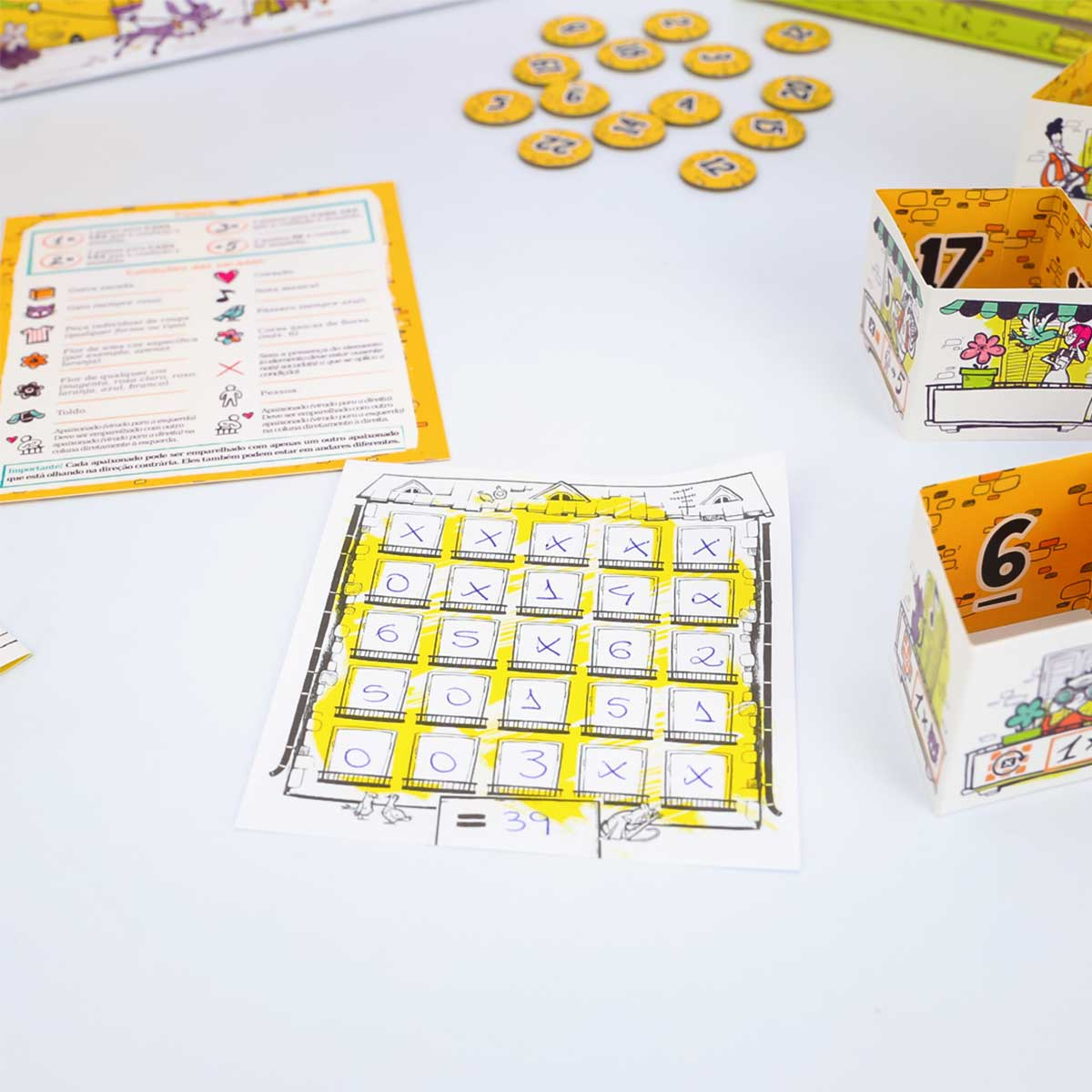 Construa um complexo de apartamentos, bloco por bloco, preenchendo a grade de 5×5. A cada turno, um dos jogadores escolherá quais dois lados do bloco de sacada ele poderá pegar e quais dois lados serão deixados para o oponente (o que contará pontos ao final). No entanto, é outro jogador quem decide onde colocar o bloco. Faça o seu melhor para cumprir as condições nas sacadas voltadas para você.