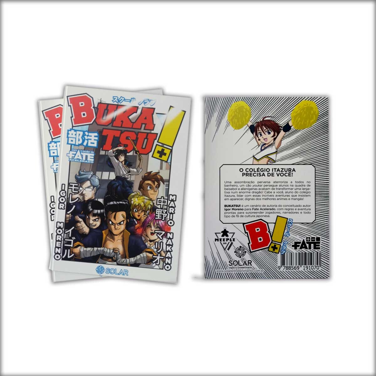 Bukatsu! é um cenário descontraído e dinâmico para Fate Acelerado que traz inúmeras regras novas sobre arquétipos de mangás, tipo sanguíneo, grêmios estudantis, alívio cômico, novas façanhas e uma temática muito bem-humorada: animes e mangás sobre jovens em vida escolar.