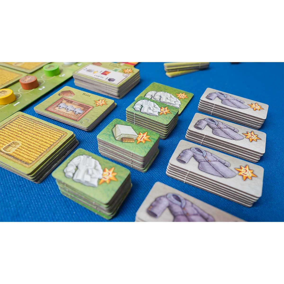 Em Campos de Arle , criado por Uwe Rosenberg, um ou dois jogadores vivem como fazendeiros na pequena e pacífica cidade de Arle, na Frísia Oriental. O linho cultivado nas terras ao redor da vila a torna um lugar lucrativo para trabalhar e viver.Campos de Arle leva os jogadores por quatro anos e meio dessa era de prosperidade, com diferentes oportunidades disponíveis conforme as estações mudam. Cultive a terra para capitalizar a demanda por linho ou encontre outras maneiras de aproveitar ao máximo a prosperidade da pequena cidade.