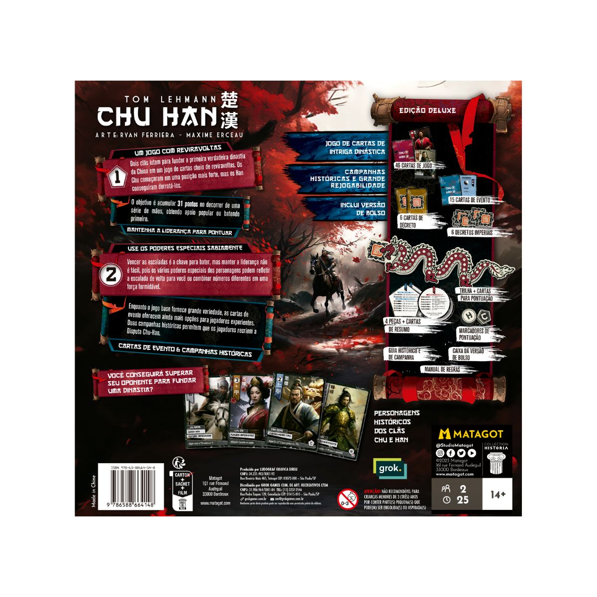 A ambientação recria a disputa entre as casas Han e Chu na China antiga, trazendo generais, batalhas e eventos históricos que unem tática e narrativa na busca pela unificação do império.