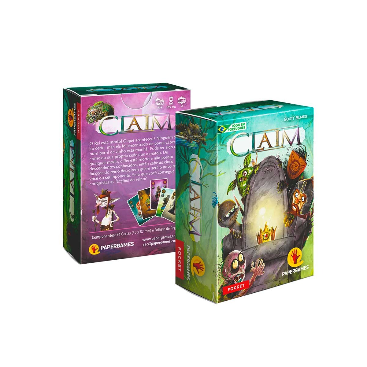 Claim é jogado em duas fases distintas. Na fase um, cada jogador recebe uma mão de cartas que usará para recrutar seguidores. Na fase dois, eles usarão os seguidores da fase um para competir e conquistar as cinco facções do reino. Cada facção tem um poder especial que afeta o jogo e os poderes podem ser diferentes em cada fase! Ao final da partida, quem tiver mais seguidores de uma facção conquista o voto daquela facção e quem conquistar o voto de ao menos três facções vence o jogo!