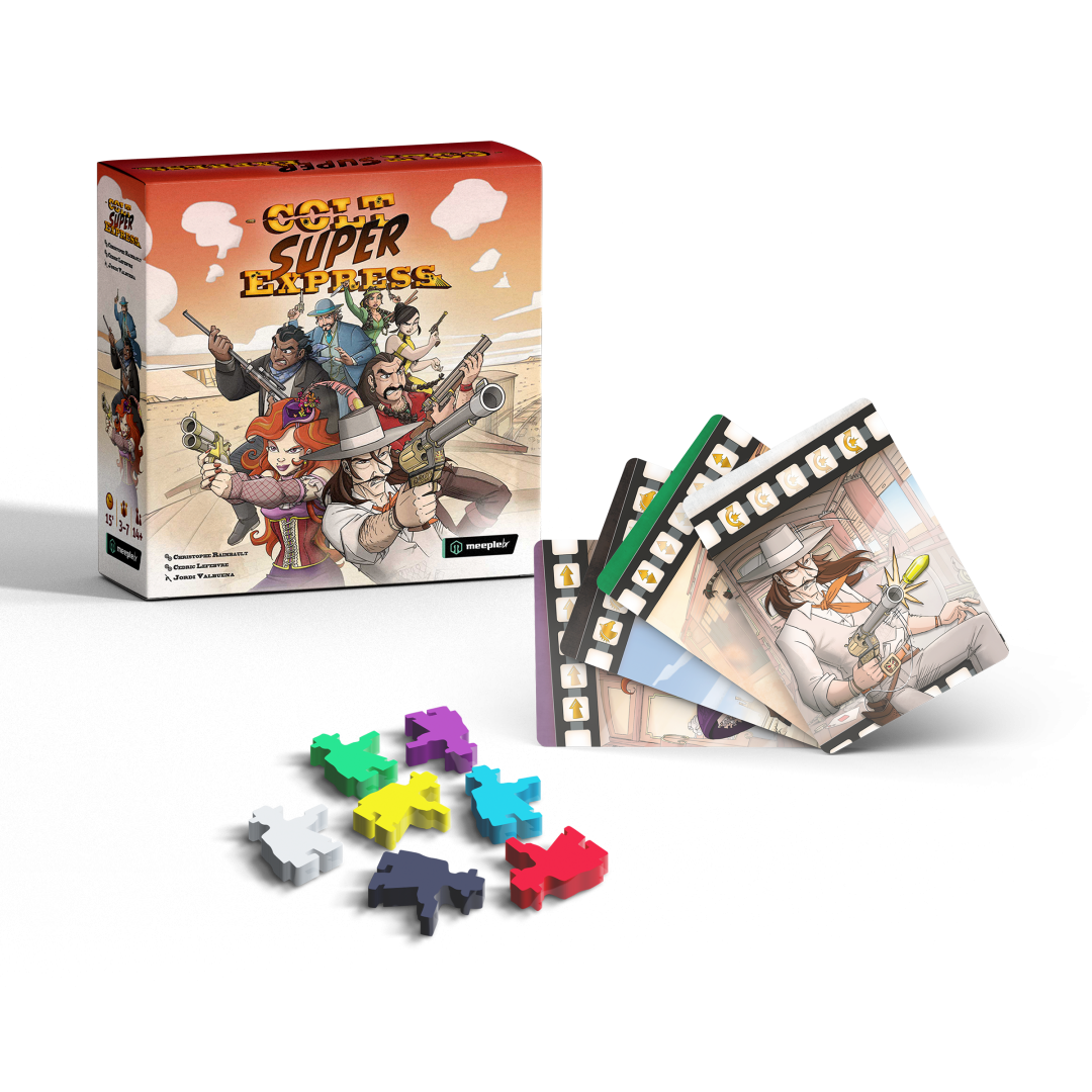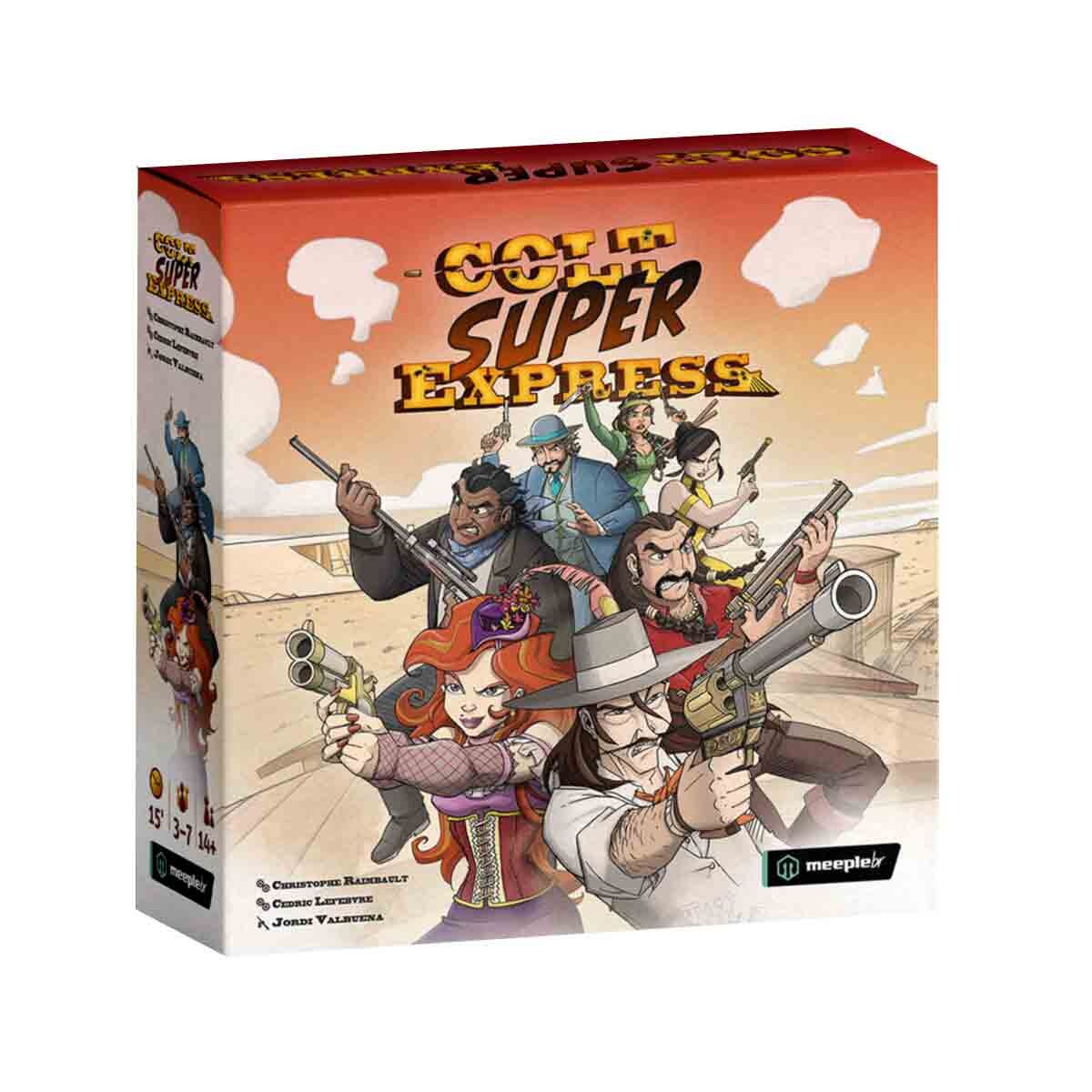 Colt Super Express é um jogo de eliminação eletrizante. Você precisa planejar seus movimentos, desviar das balas e tentar não cair do trem. Ao final de cada rodada uma carta de vagão é retirada e se o seu bandido estava nela é fim de jogo para você.
