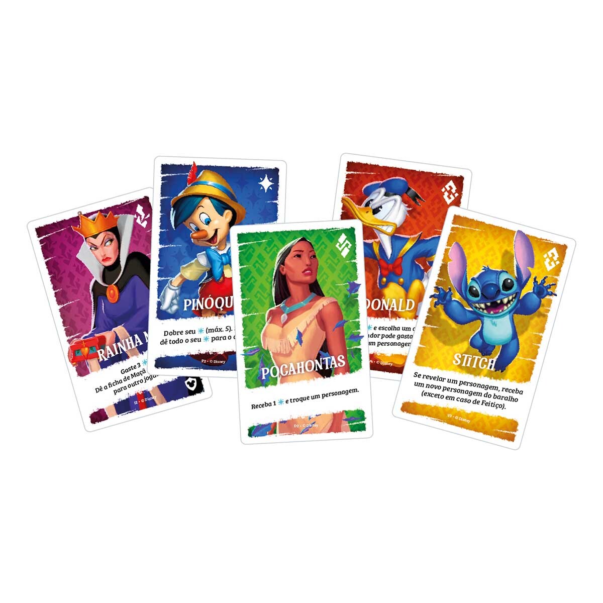 Cada versão de Disney Coup oferece cinco personagens exclusivos do universo mágico de Walt Disney. Truques Traiçoeiros traz Donald, Pocahontas, Pinóquio, Rainha Má e Stitch. Misture personagens de diferentes versões e crie diversas combinações, tornando cada partida uma nova história a ser desvendada!