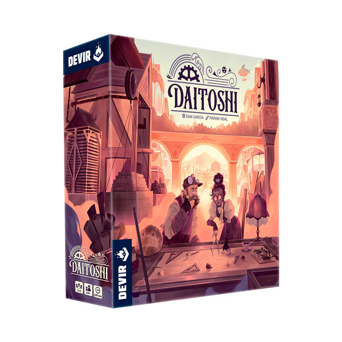 Daitoshi nos transporta para uma era de progresso movida a vapor, onde cidades crescem, fábricas prosperam e uma megamáquina promete revolucionar o futuro. Nele você competirá para somar pontos de vitória gerindo recursos, expandindo distritos e negociando, mas sempre enfrentando o impacto ambiental de suas ações. Enquanto expande sua fábrica e contribui para o avanço da cidade, terá que lidar com as consequências no subsolo, florestas e rios. Apesar das antigas lendas sobre Yôkai protegendo a natureza, o progresso segue implacável — embora reflorestar e mascarar seus impactos possa ser uma estratégia prudente.
