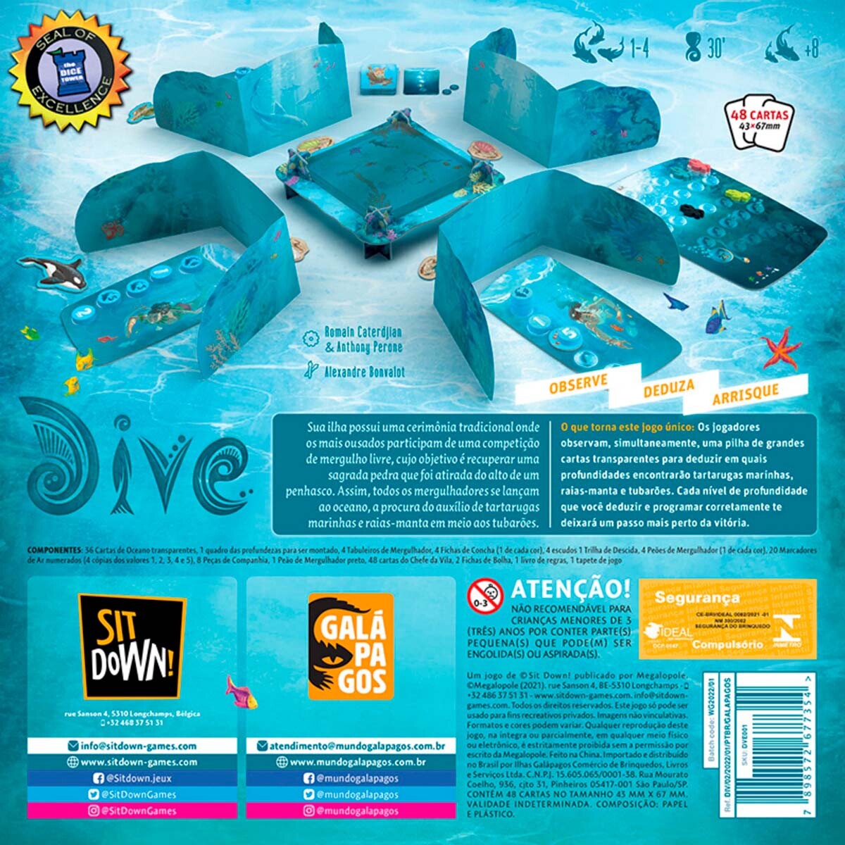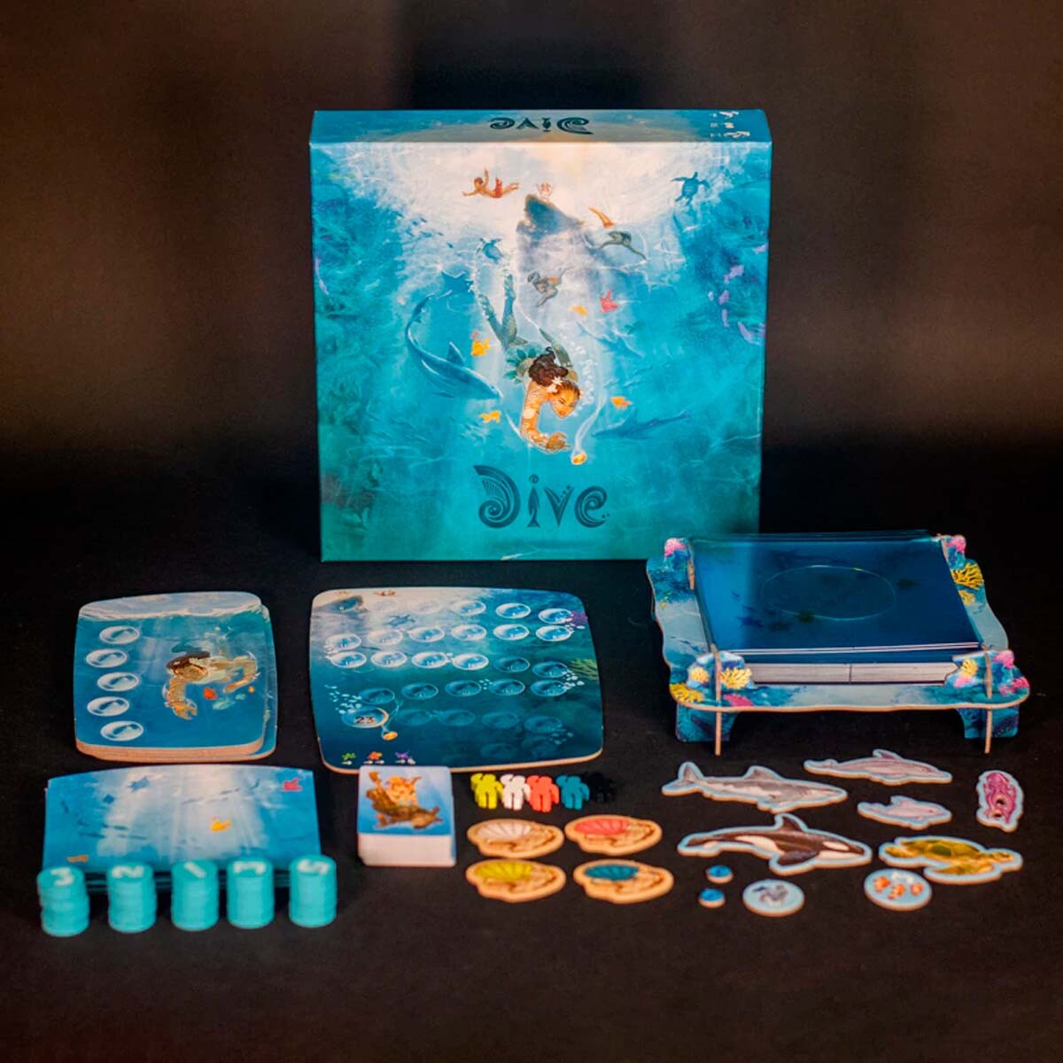 Dive explora a noção de percepção, a capacidade dos mergulhadores observarem o oceano através de um baralho de cartas transparentes e se beneficiarem das suas observações. O jogo é executado simultaneamente para todos os mergulhadores, onde deverão programar seus mergulhos secretamente.