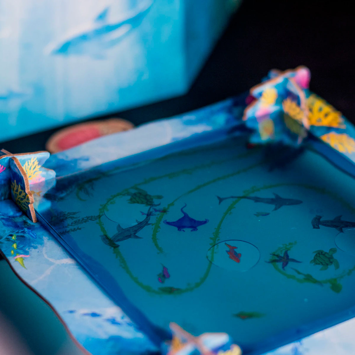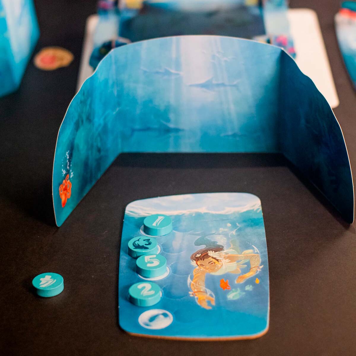 Ao observar as cartas Oceano empilhadas, eles tentam perceber em que profundidades encontrarão tartarugas marinhas e raias prontas para ajudá-los, assim como tubarões que eles não querem perturbar. Cada um deles tem tokens aéreos que usarão para programar suas ações. O mergulhador que recupera a pedra sagrada vence.