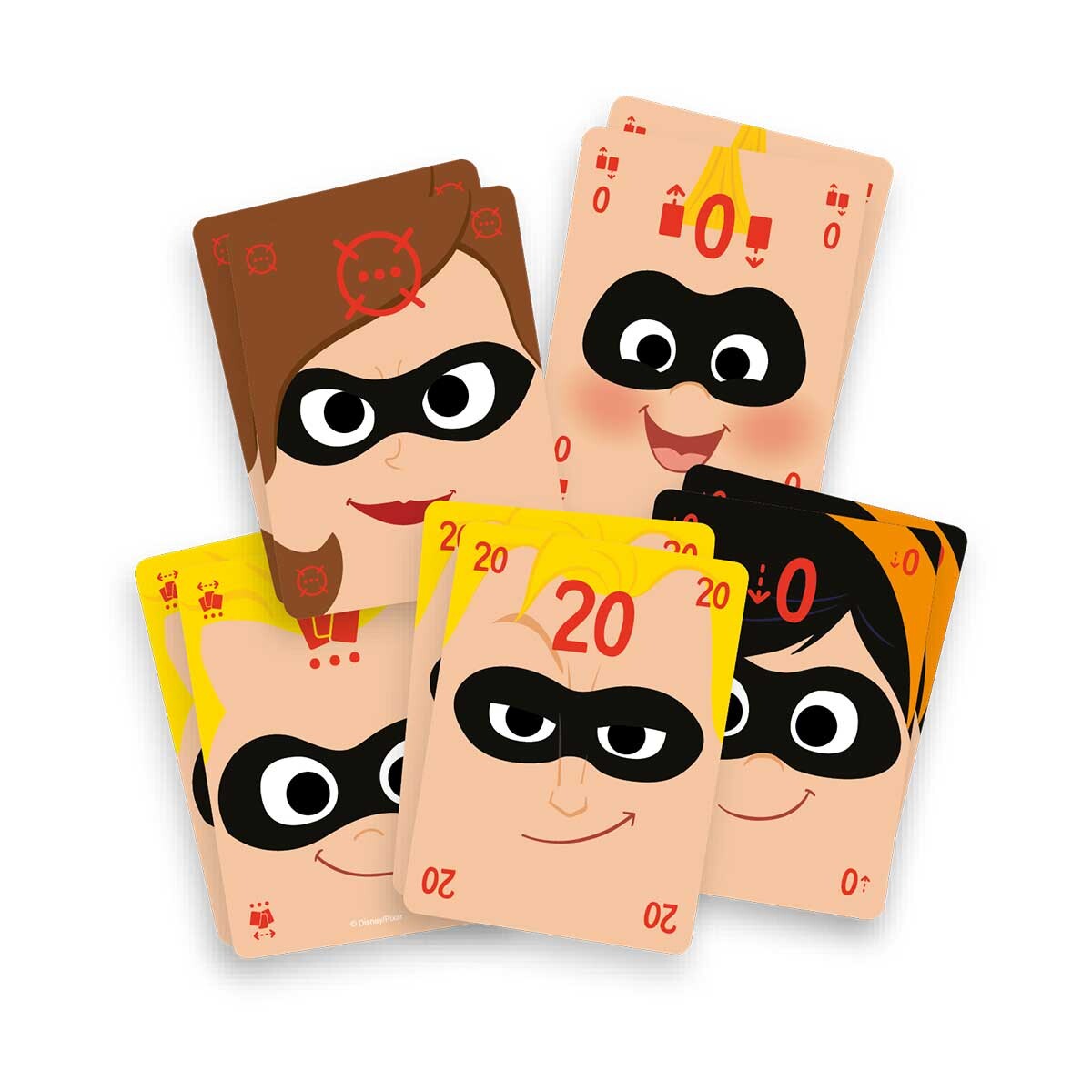 Dobro Pixar Promo Pack: Os Incríveis inclui 10 cartas especiais com novos efeitos que podem ser adicionadas ao jogo Dobro Pixar em diversas combinações.