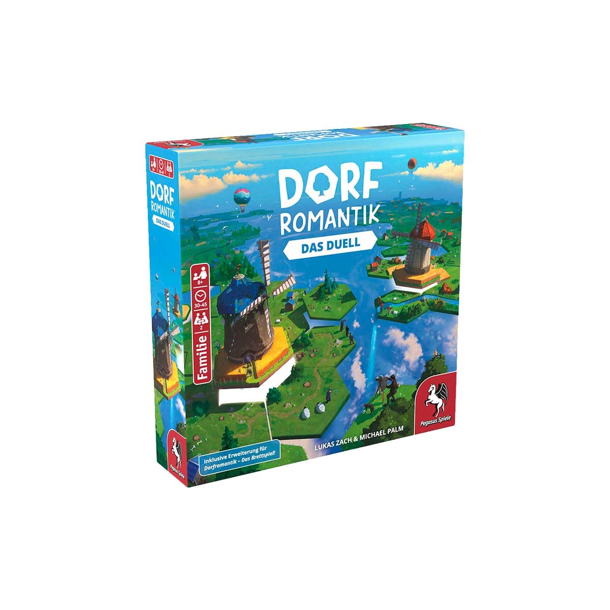 Dorfromantik: The Duel permite que dois jogadores ou duas equipes compitam. E com duas cópias até quatro pessoas podem jogar. Quem criará o mais belo mundo de paisagens hexagonais? Quem será melhor em cumprir as ordens do aldeão e, ao mesmo tempo, dominar o desafio de novas atribuições?