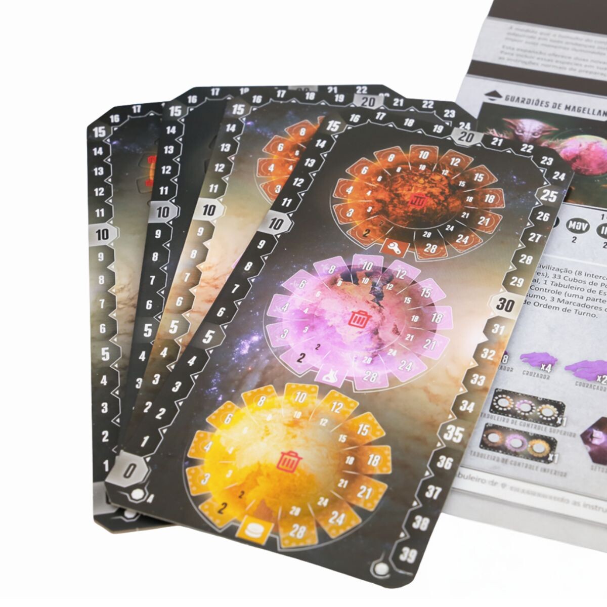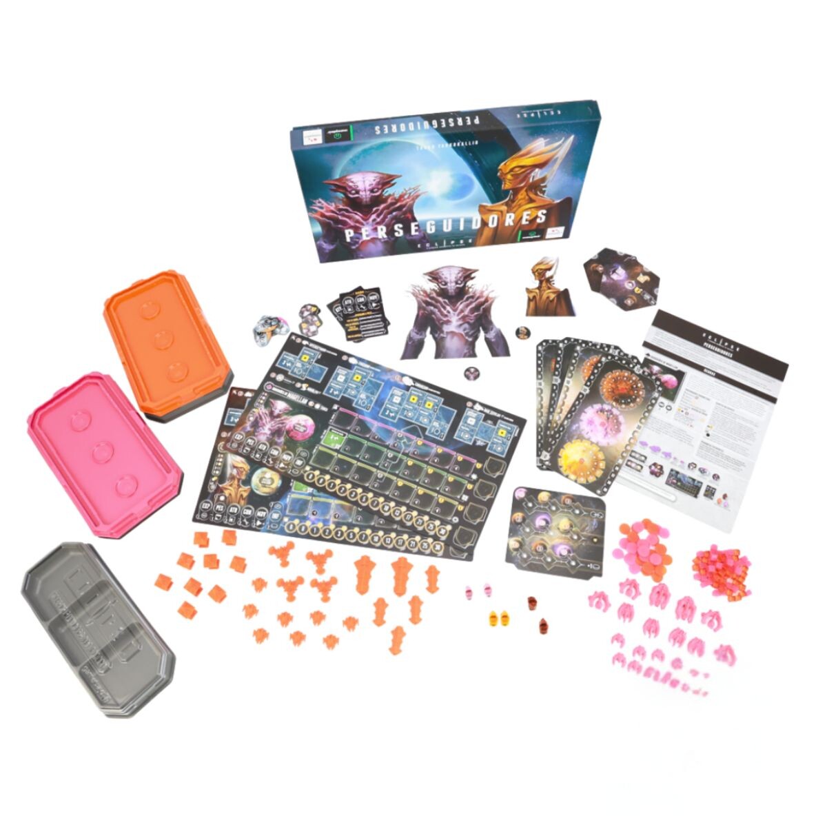 A expansão Eclipse: Perseguidores oferece duas novas Espécies Aliens para serem usadas em suas partidas – Guardiões de Magellan e Iluminados de Lyra. Para incluir essas espécies em sua partida, adicione os tabuleiros de espécies como opções selecionáveis durante a preparação e siga todas as instruções normais de preparação usando os componentes correspondentes.
