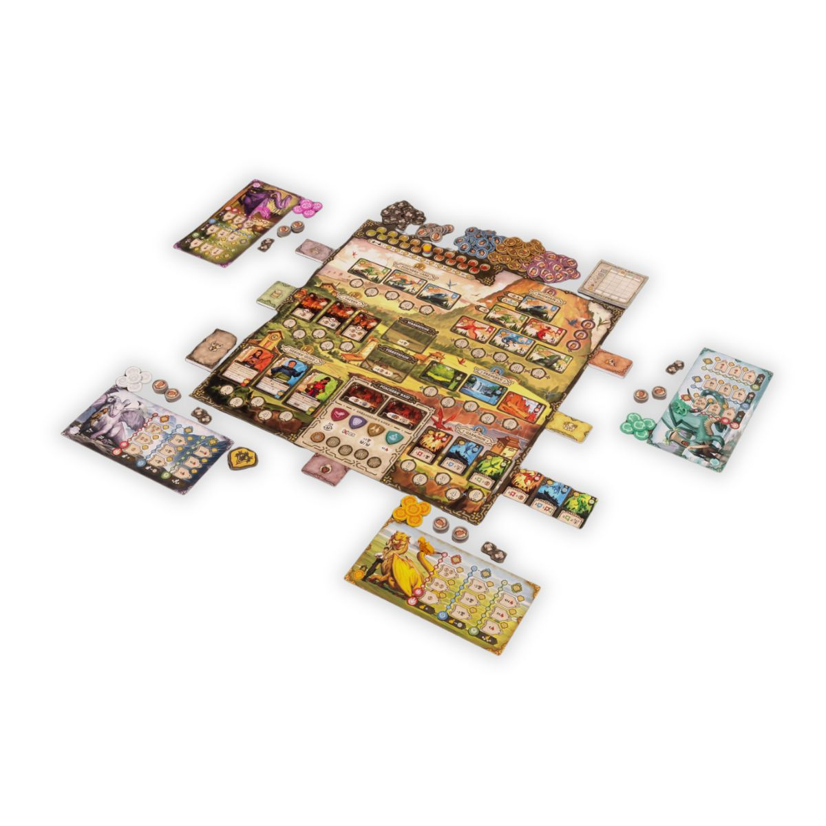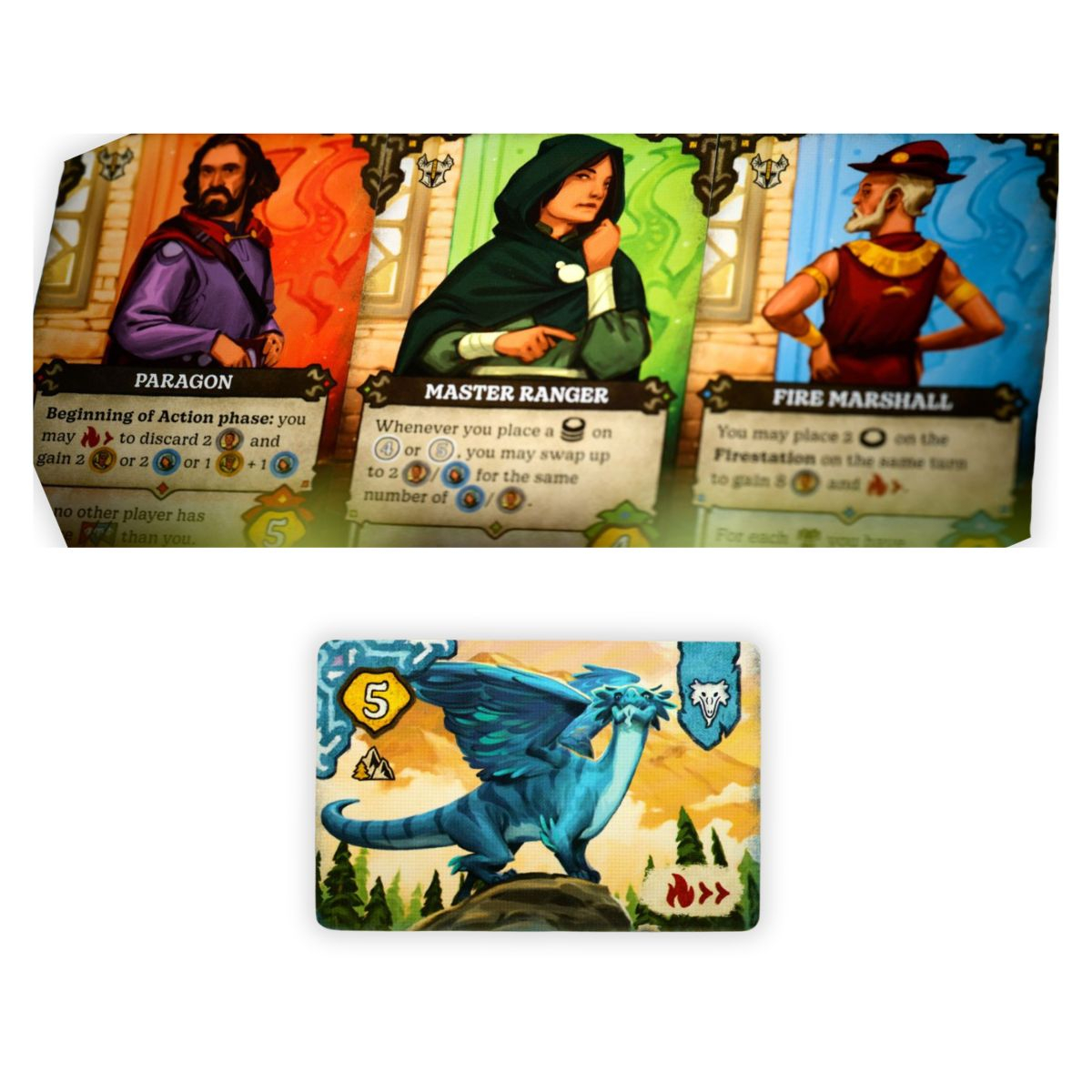 As recompensas dos locais permitem que você recrute Heróis com habilidades únicas, resgate Dragões das garras dos caçadores para levá-los em segurança às Reservas correspondentes e lance contra-ataques contra eles. No calor de algumas ações, e durante o Ataque dos Caçadores ao final de cada rodada, você pode se queimar, e avançar demais na trilha da Chama cobrará seu preço no final do jogo.