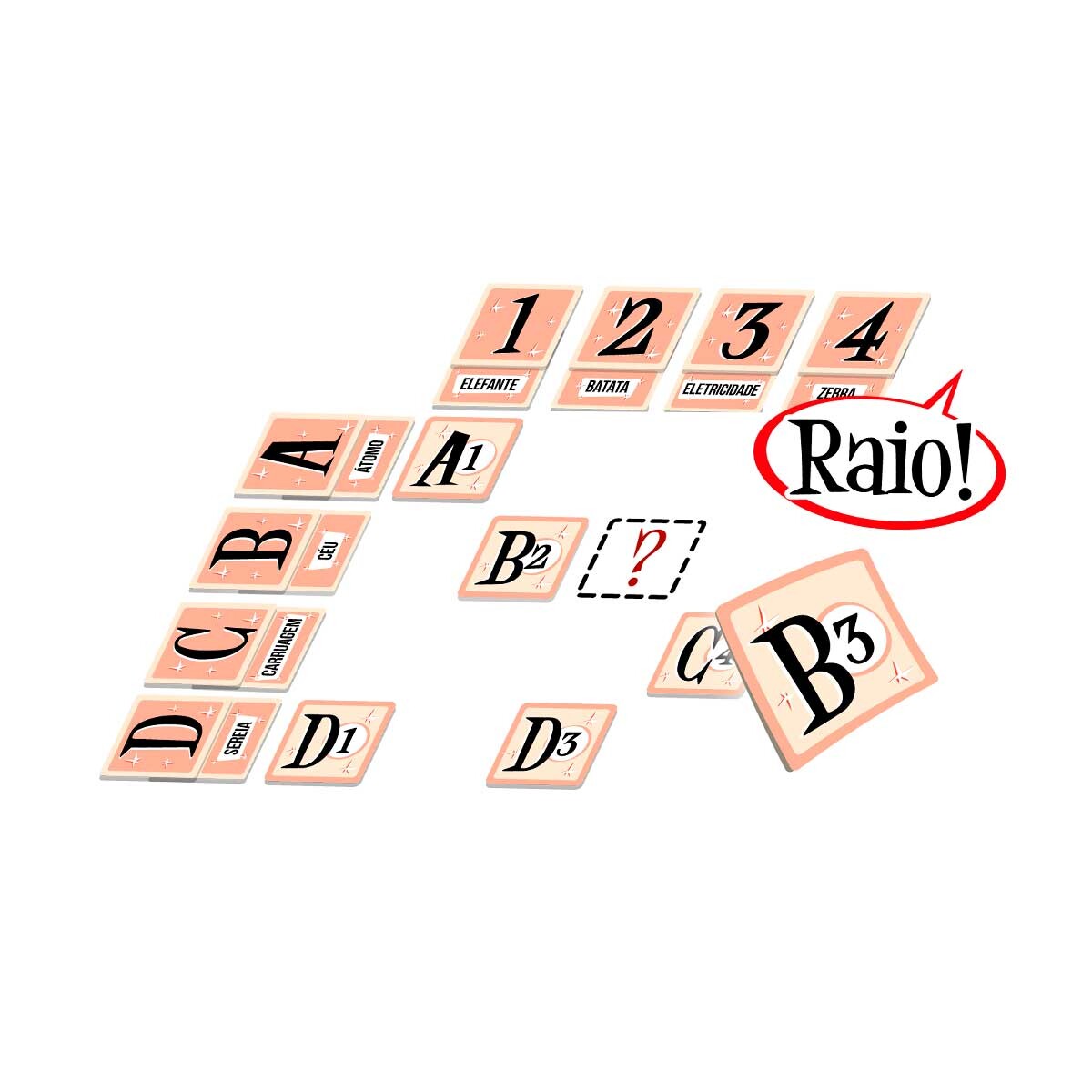 Você consegue pensar em uma palavra que seja o cruzamento entre “Céu” e “Eletricidade”? Conseguiu? Então diga em voz alta para os outros jogadores e torça para que eles consigam descobrir as duas palavras-chave que você cruzou para dar sua dica!