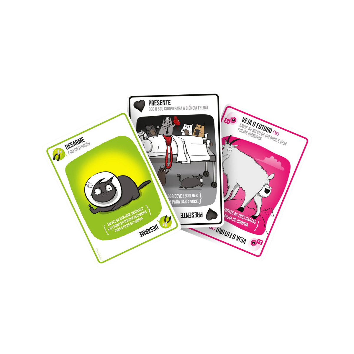 Exploding Kittens é uma versão estratégica e cheia de gatinhos de uma roleta russa. Os jogadores compram cartas até que um deles encontre um exploding kitten.