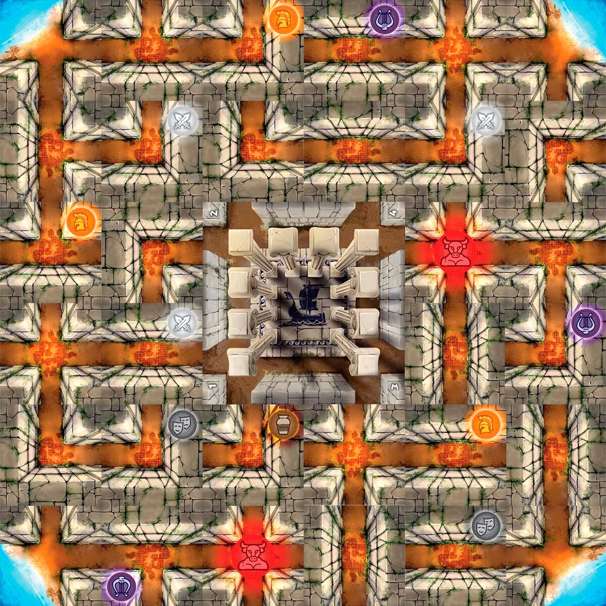 Nossos valentes heróis estão presos no centro do Labirinto do Minotauro na Ilha de Creta e precisam fugir para pegar seus barcos para bem longe dali. Mas não sem antes recolher os valiosos troféus espalhados pela ilha. O labirinto está em constante mudança, então os heróis precisam usar sua inteligência e sagacidade para encontrar a melhor saída. Mas não temam, os deuses estão ali para ajuda-los. Cada deus concede aos seus devotos um poder único que vai ajuda-lo em sua fuga.