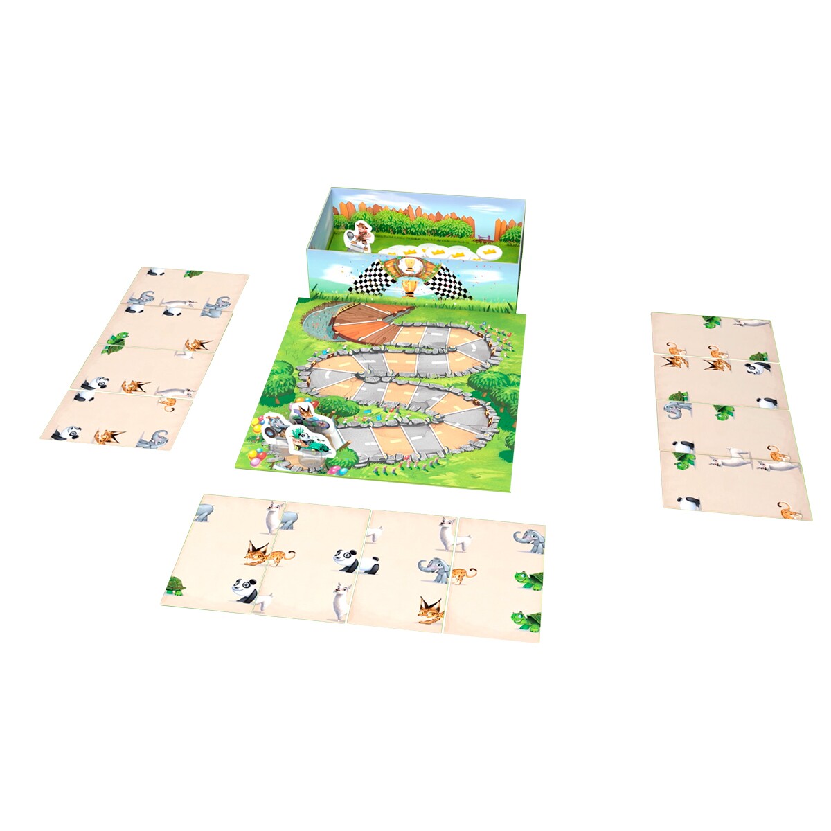 Alinhe cartas para formar animais e ajudá-los a escapar (modo cooperativo para maiores de 4 anos) ou vencer a corrida do ano (modo competitivo para maiores de 6 anos)! Dois jogos em um!