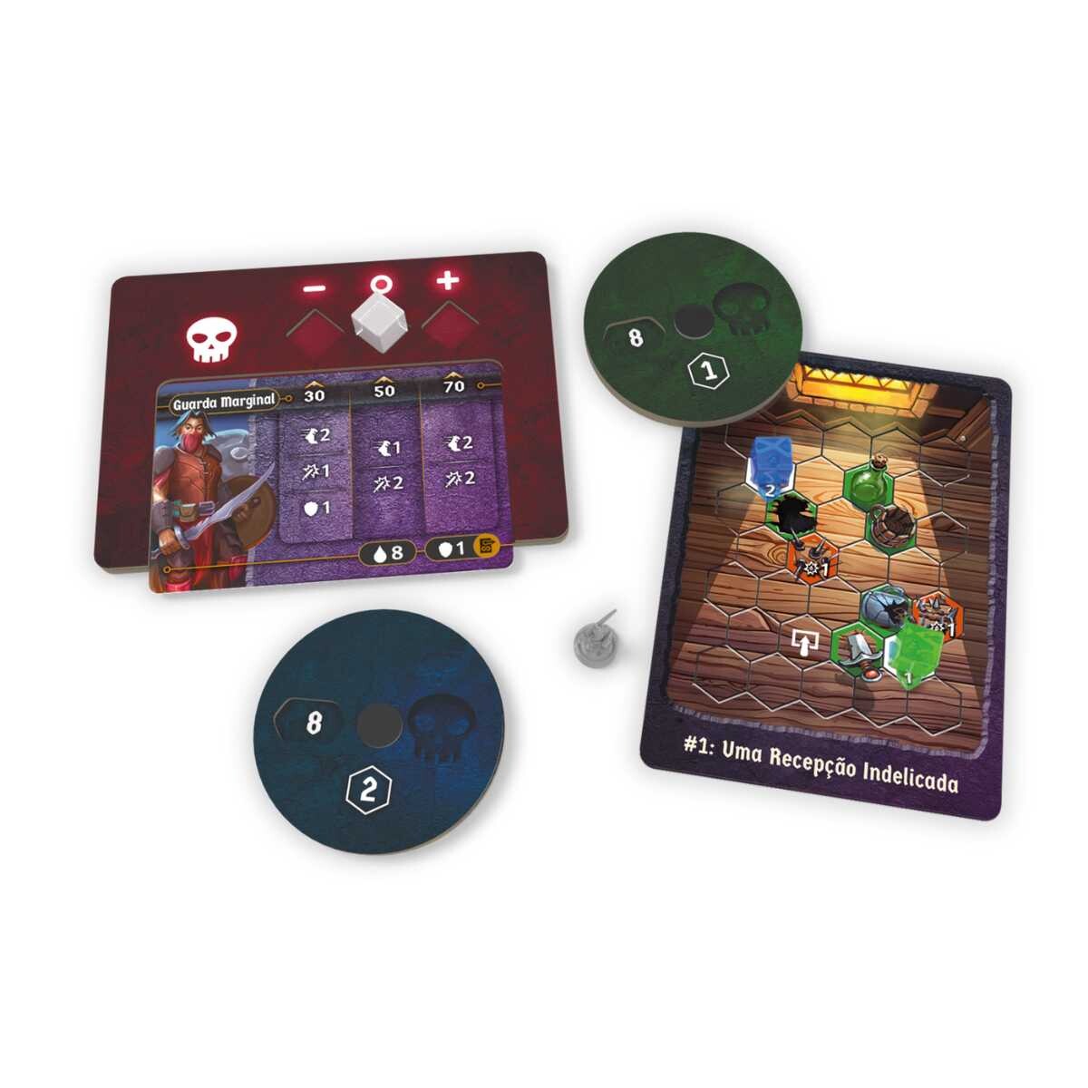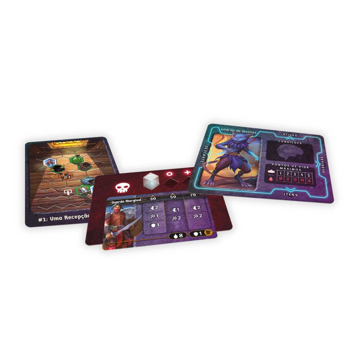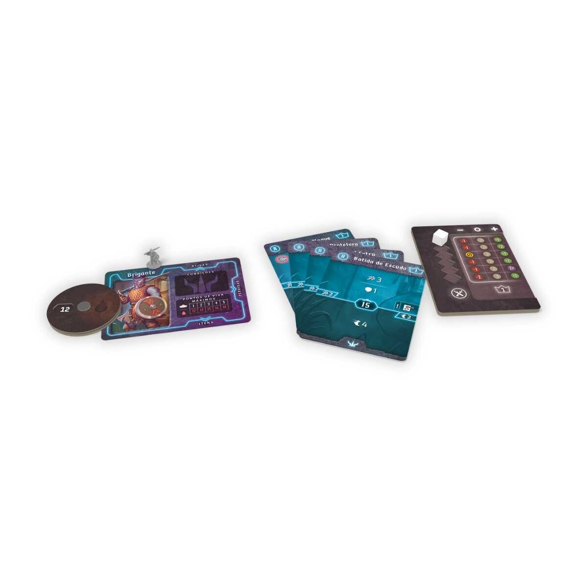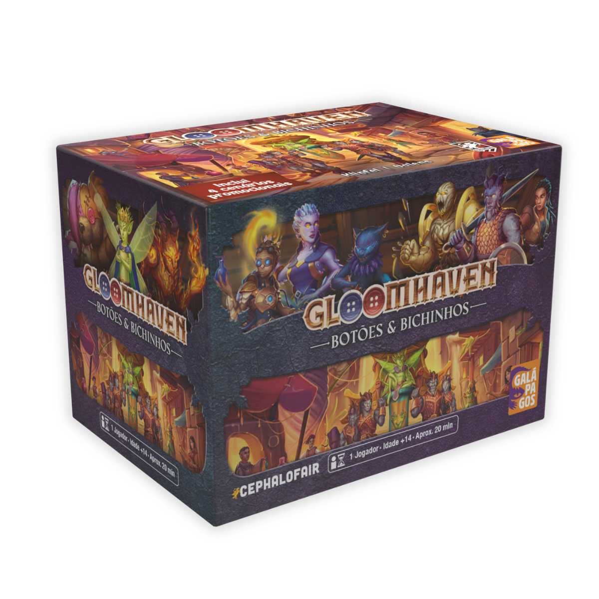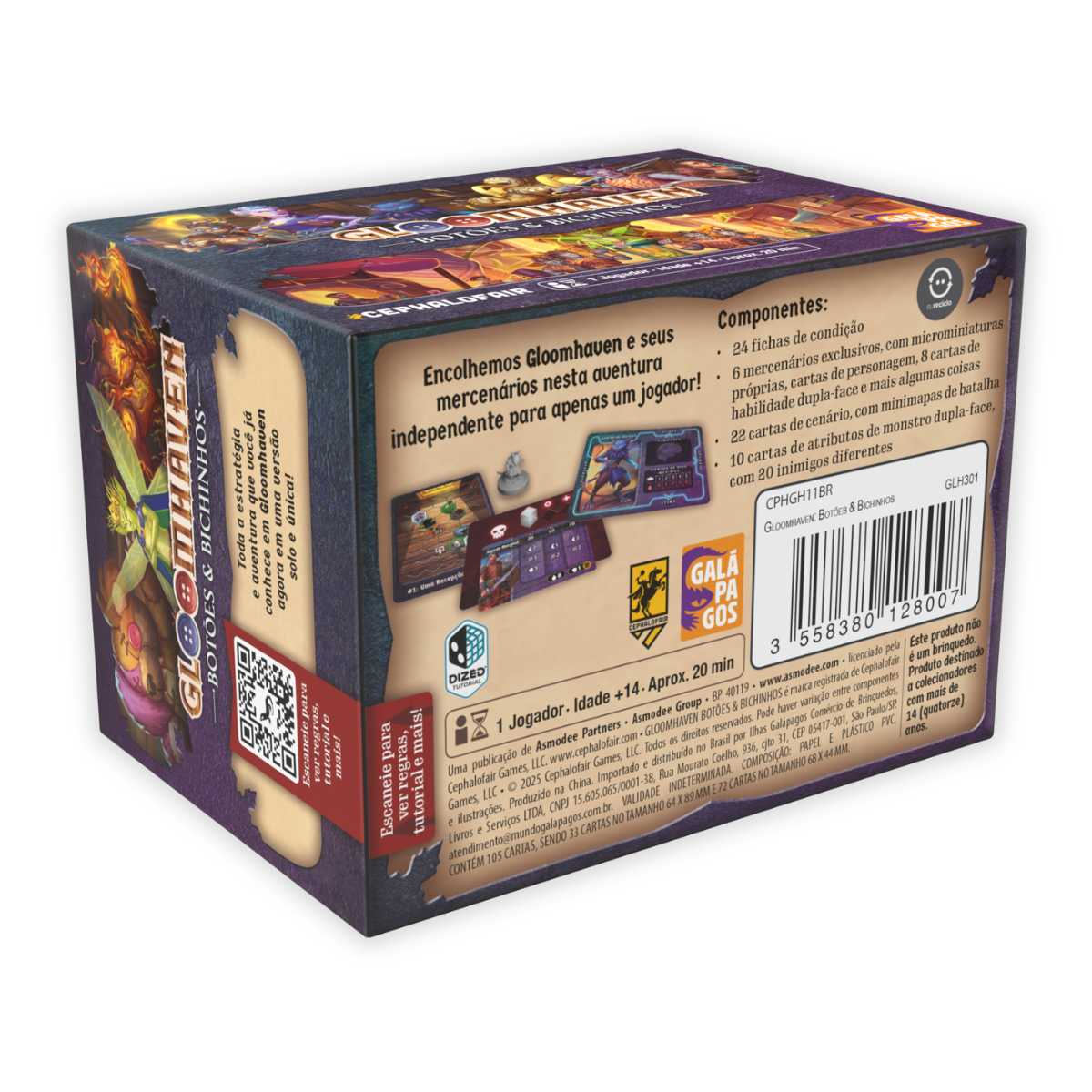 Gloomhaven: Buttons & Bugs é um jogo solo, com uma história de campanha original escrita por Isaac Childres, que apresenta um estilo de jogo semelhante ao Gloomhaven em uma fração do tamanho.