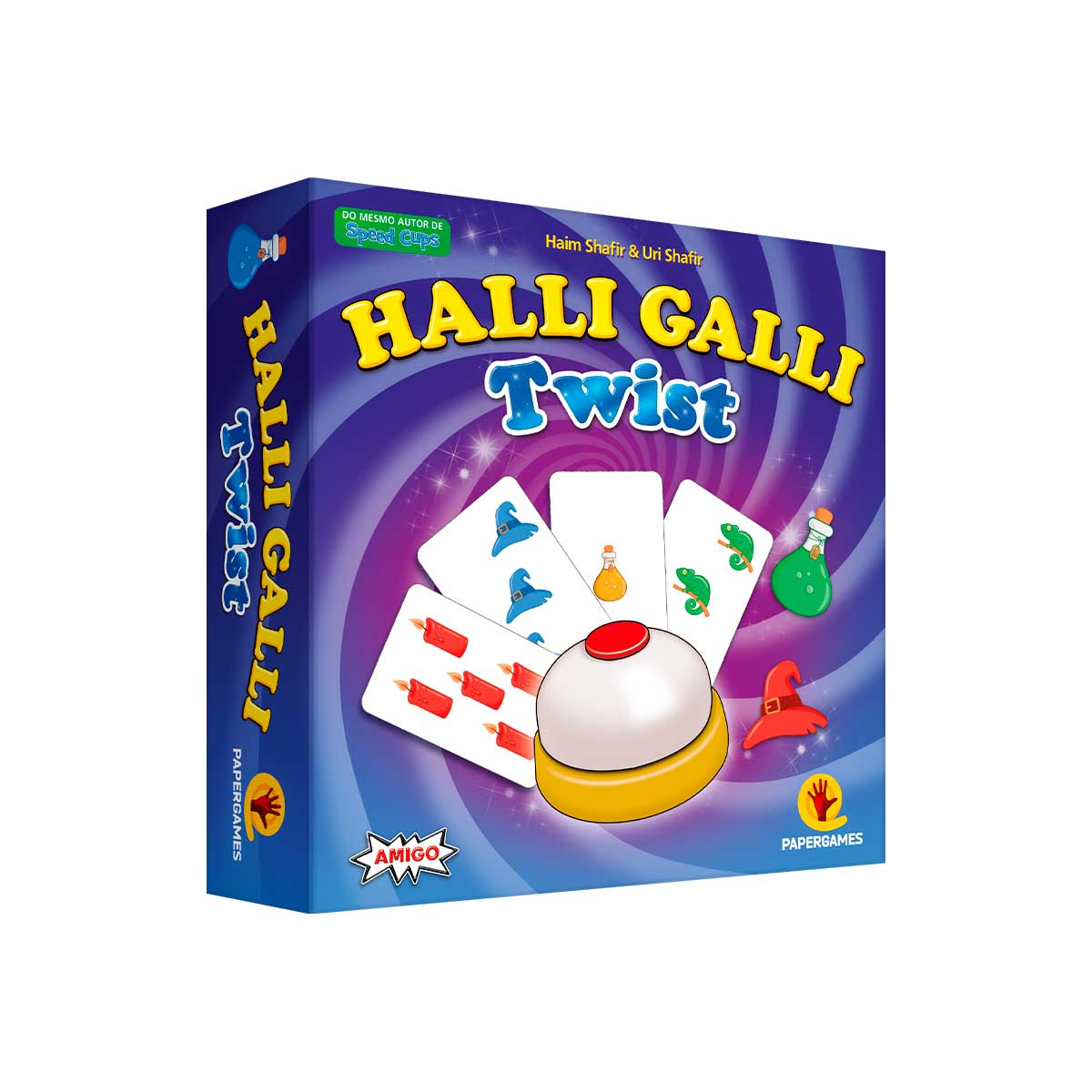 Halli Galli Twist é diversão garantida para todas as idades, trazendo um novo desafio ao clássico Halli Galli! Um jogo rápido, de observação e velocidade, do premiado autor Haim Shafir, criador do Speed Cups.