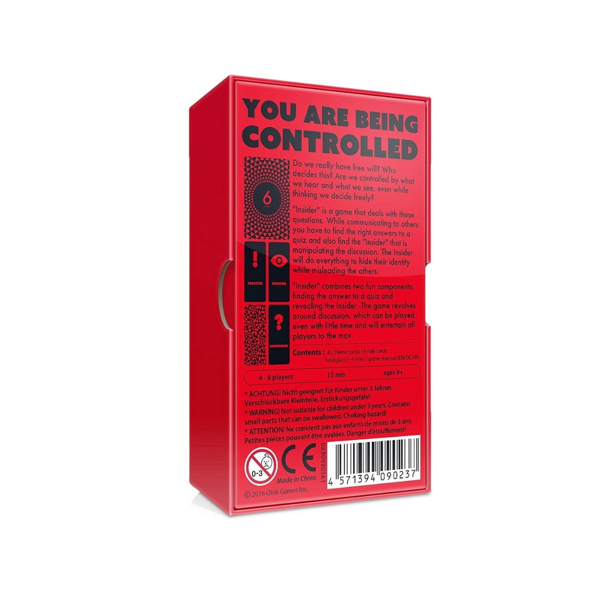 Depois de encontrar a resposta certa, todos, inclusive o mestre do jogo, tentam encontrar o insider entre eles. "Insider“ combina dois componentes divertidos: encontrar a resposta para um quiz e revelar o Insider. O jogo gira em torno da discussão, que pode ser jogada mesmo com pouco tempo e irá entreter ao máximo todos os jogadores.