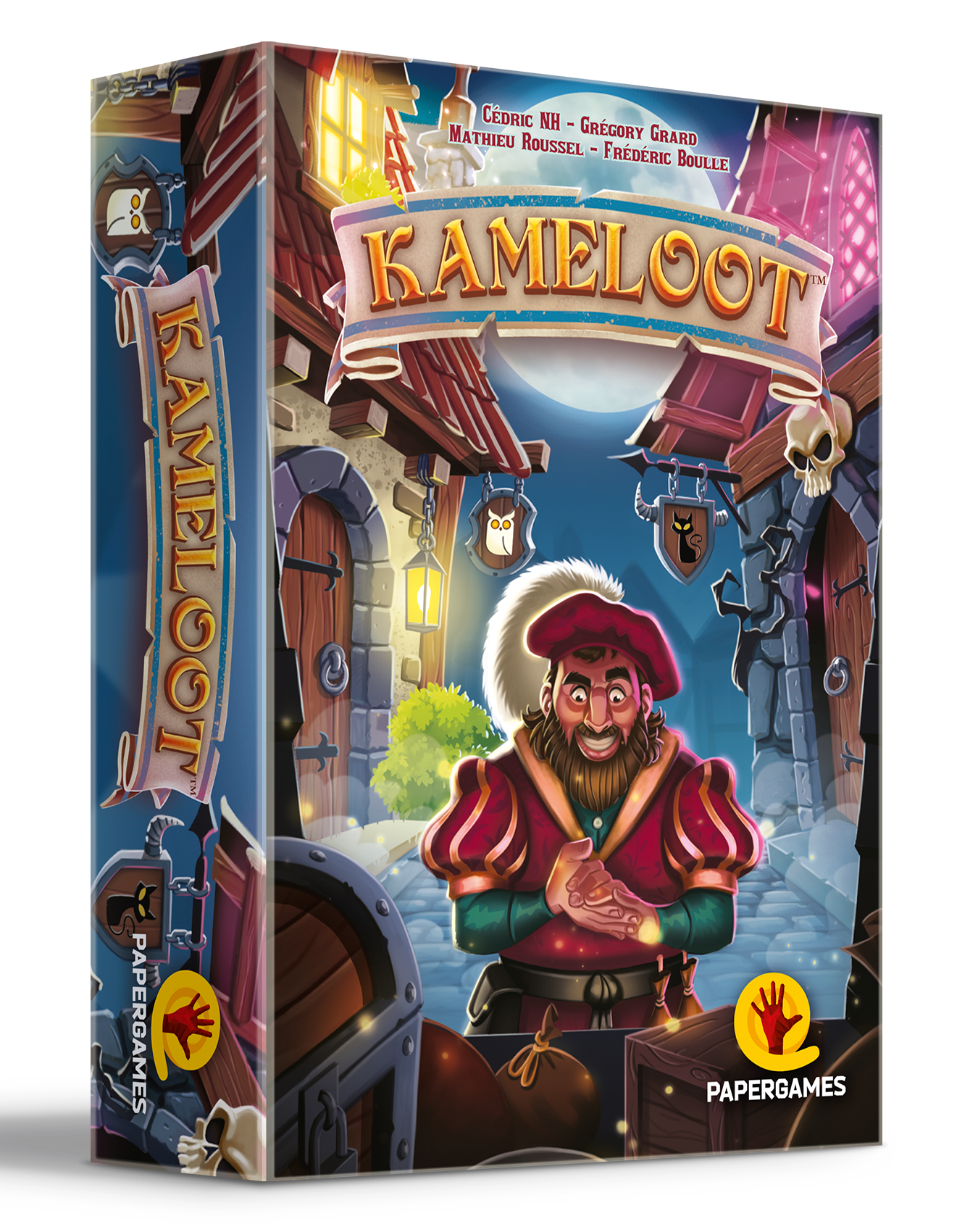 Tabernas, mercadores motivados e objetos mágicos são tudo que você precisa para tornar-se o mercador mais rico de Kameloot. Mas qual taberna você irá escolher: a “Coruja Chirriante”, onde paladinos e ilusionistas dividem o espaço com ricos mercadores ou a “Gato Preto”, lar de vigaristas e feiticeiros conspiradores? Seja qual for sua escolha, muito cuidado com os vira-casacas pois a lealdade é frágil nas tabernas!