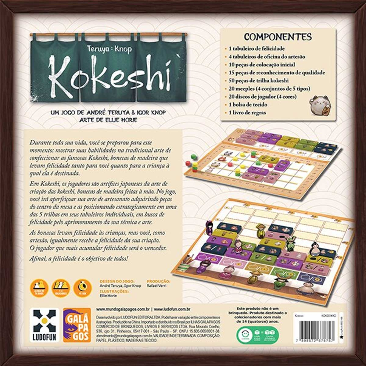 A cada peça que você coloca, sua arte se refina e sua satisfação cresce. O jogador que acumular mais felicidade por meio de suas criações será coroado o grande vencedor. Kokeshi é mais do que um jogo; é uma experiência de paz, arte e tradição. Conquiste o coração das crianças e a sua própria felicidade através da arte de criar.
