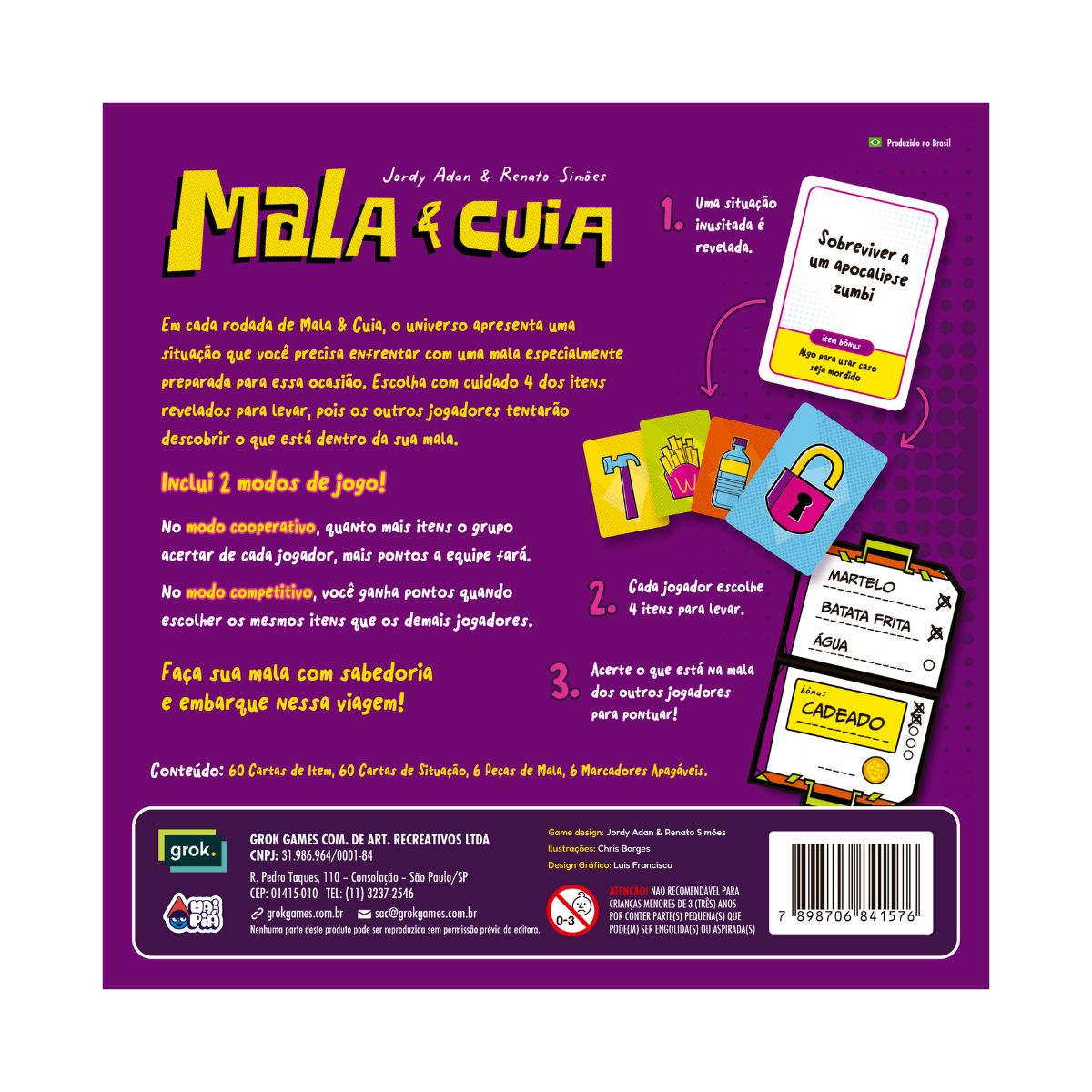 A experiência pode ser vivida de forma cooperativa, com todos tentando adivinhar juntos o que cada um colocou na mala, ou de forma competitiva, em que vence quem mais acertar as escolhas dos outros. Fácil de aprender, cheio de interações e risadas, transforma o simples ato de arrumar a mala em algo criativo e divertido.