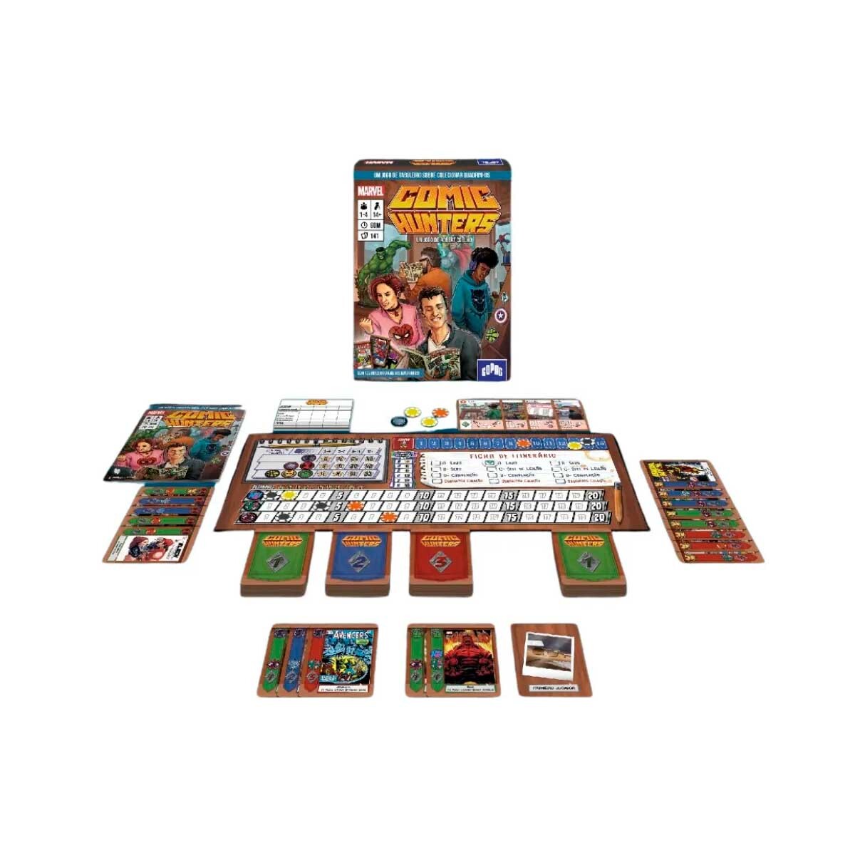 Em Comic Hunters, os jogadores são colecionadores de quadrinhos interessados em reunir a coleção mais valiosa dos maiores heróis do Universo Marvel. A partida se divide em três rodadas e, em cada uma delas, os jogadores adquirem cartas de HQ por métodos variados em quatro Locais do tabuleiro. Todos ganham pontos de vitória pelo tamanho de suas coleções, por terem uma boa variedade de heróis e por terem mais Destaques em suas HQs. Ao final da terceira rodada, contabilizam-se os pontos recebidos e o colecionador com a pontuação mais alta será o vencedor.
