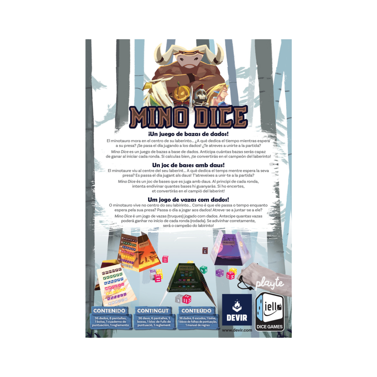Criado por Manfred Reindl, este jogo de vazas com dados traz um toque mitológico ao clássico formato: o minotauro, o grifo e a sereia entram em cena com poderes especiais que podem virar o jogo a qualquer momento. Fácil de aprender, rápido de jogar e perfeito para grupos de 3 a 6 pessoas, Mino Dice é ideal para sessões leves e animadas, e uma excelente opção para todas as idades a partir de 8 anos. Com produção de qualidade, partidas de cerca de 30 minutos e mecânicas acessíveis mesmo para iniciantes, o jogo é um ótimo título para ampliar sua linha de jogos casuais e familiares. Compacto, prático e com alto fator de rejogabilidade.