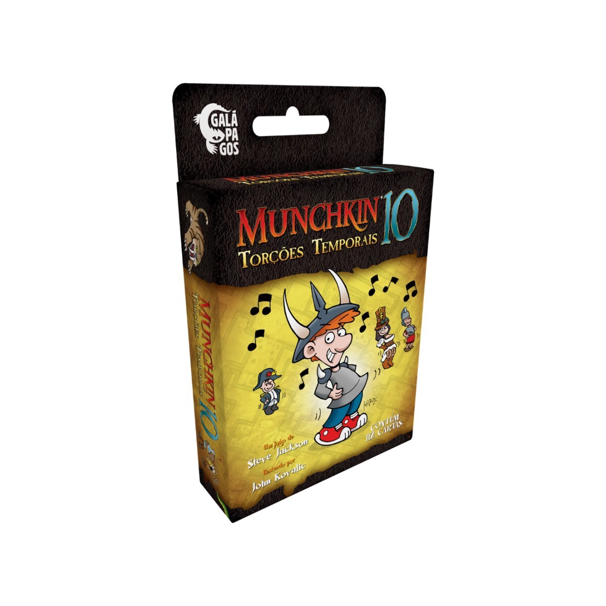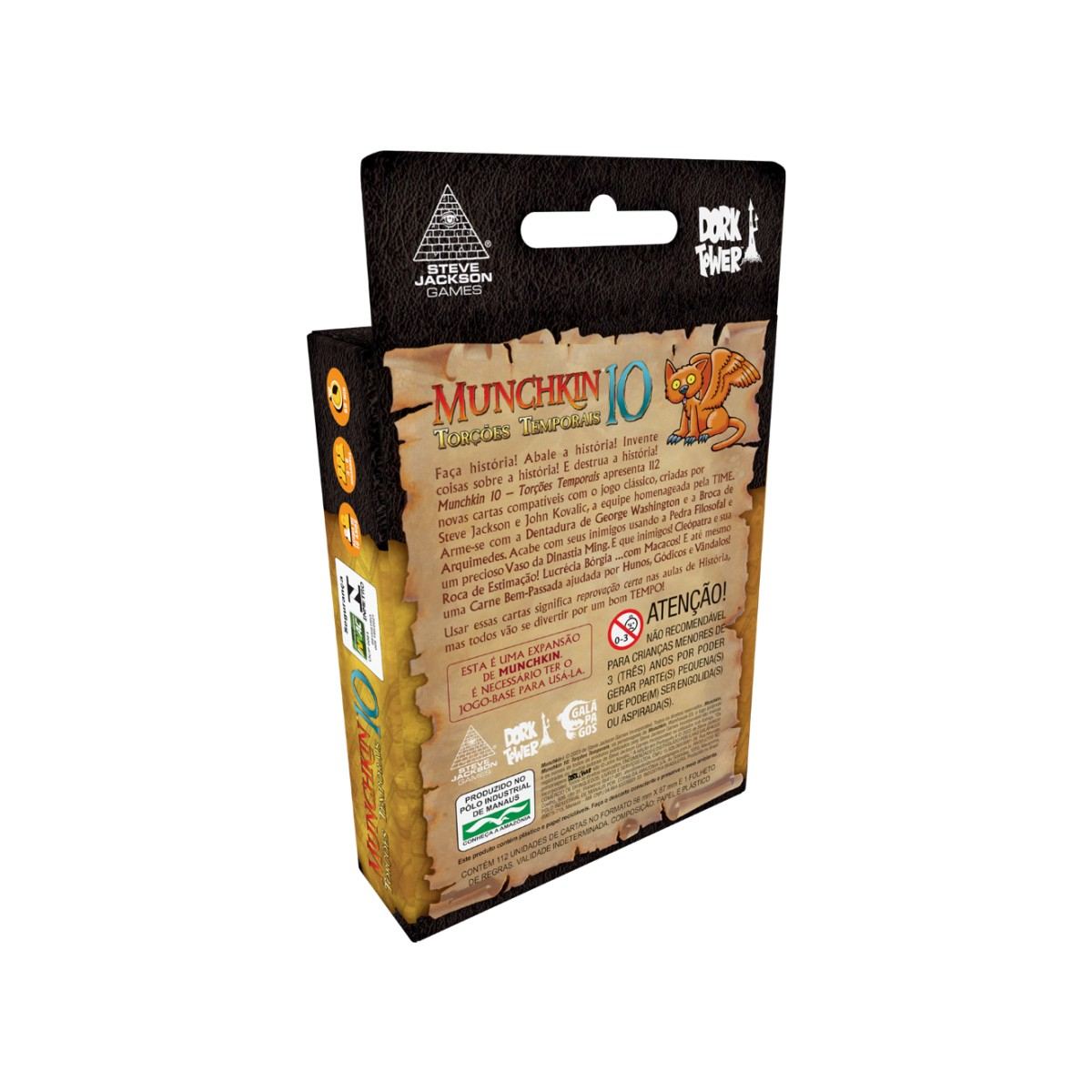 A expansão Munchkin 10 – Torções Temporais traz 112 cartas compatíveis com o jogo base. Arme-se com os dentes falsos de George Washington e o parafuso de Arquimedes. Acabe com seus inimigos com a Pedra Filosofal e um precioso vaso Ming. E que inimigos!
