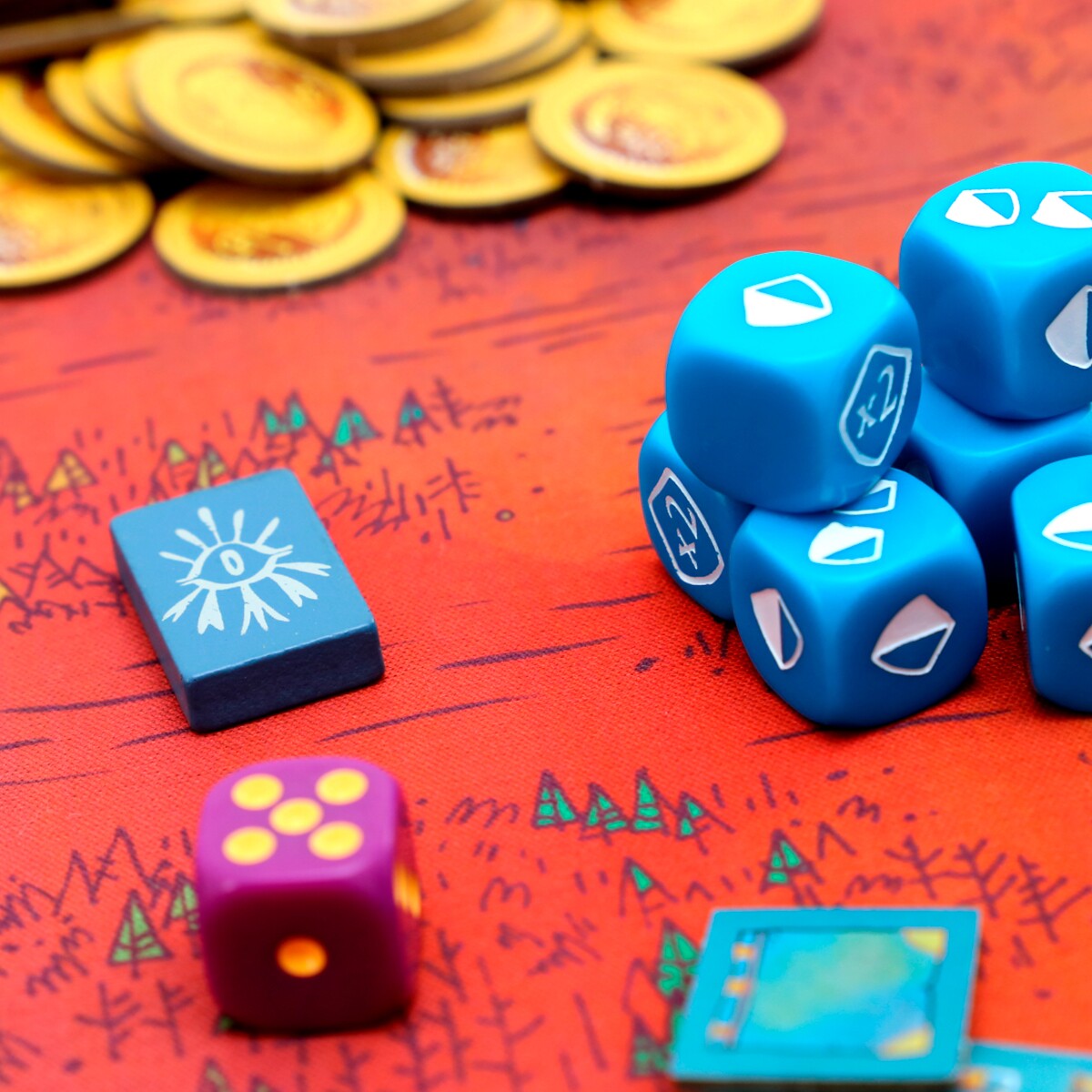 Cada jogador recebe uma peça de madeira distinta e um grupo de tropas, e podem rolar uma dúzia de dados com faces especiais.