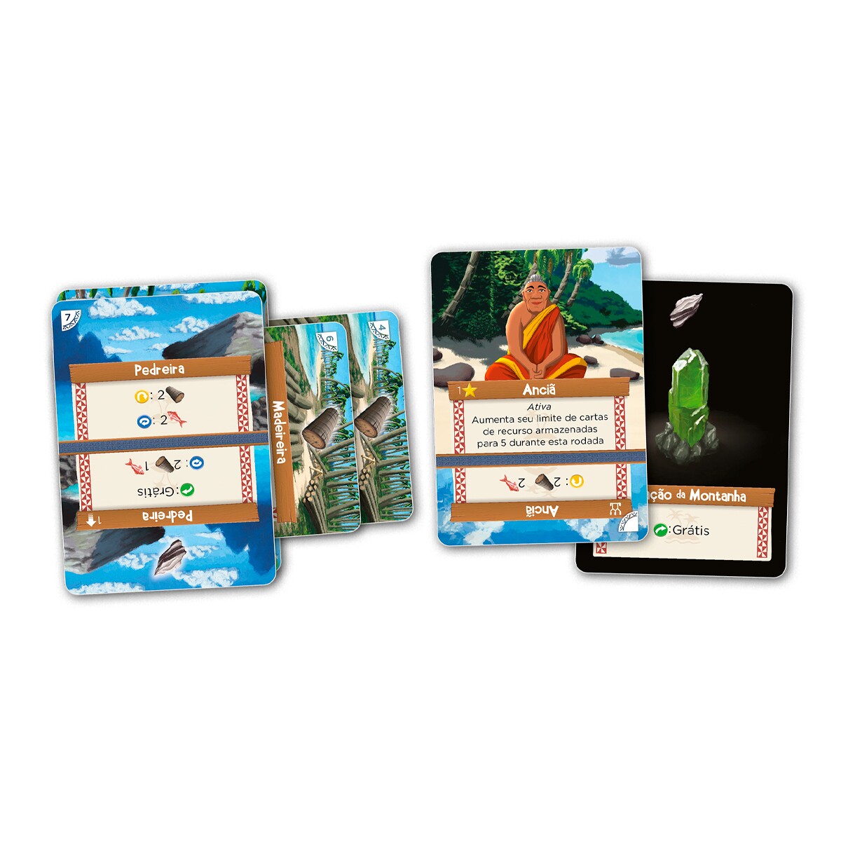 Com um inteligente mecanismo de transformação do baralho, o jogador utiliza apenas 17 cartas (com 4 posições cada) ao longo de 8 rodadas para moldar sua ilha e superar os desafios apresentados.