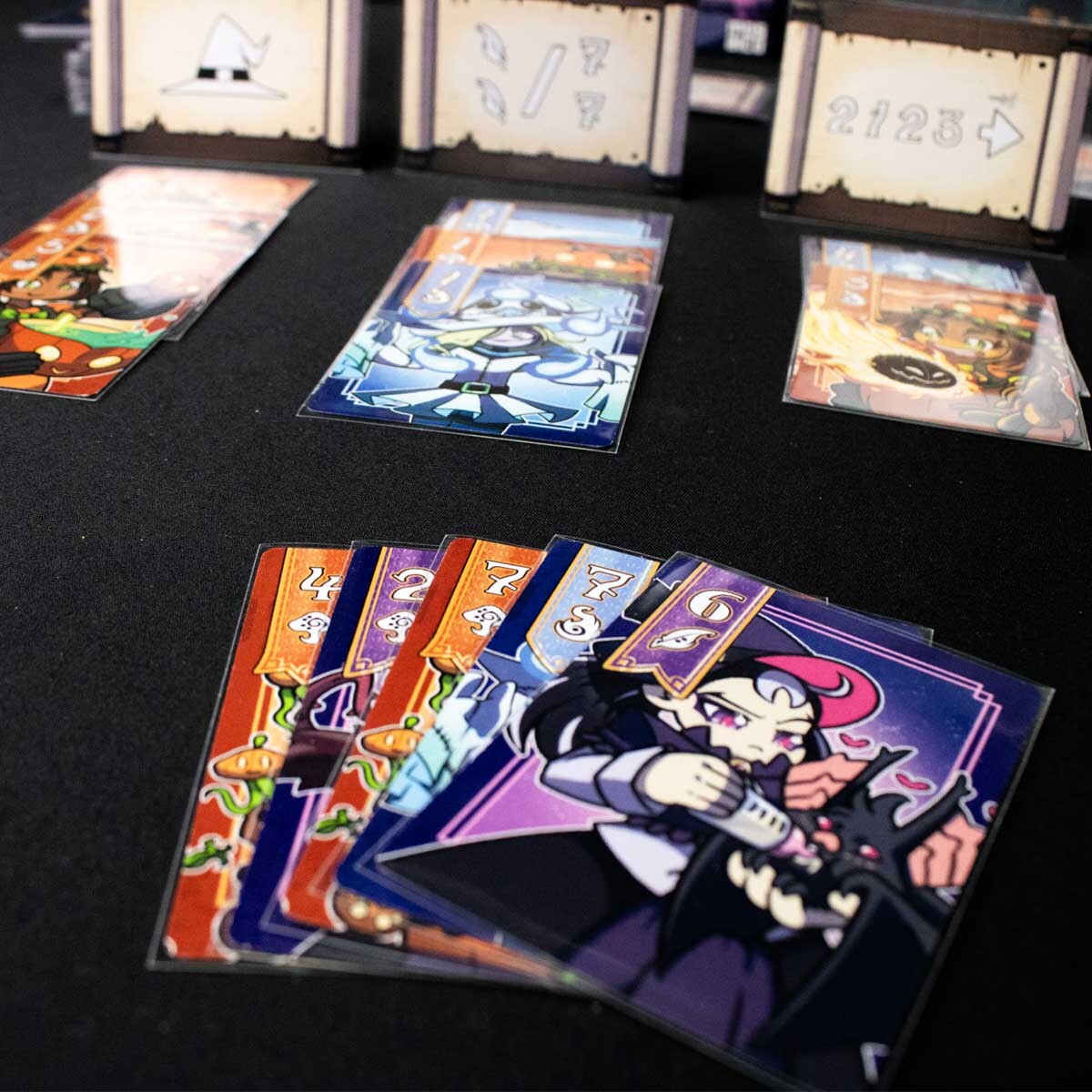 As cartas são reveladas de forma simultânea e aquele que revelar a carta “mais rápida” à coloca primeiro. Depois, o próximo jogador na Ordem de Prioridade verifica em qual rito pode colocar e assim por diante.