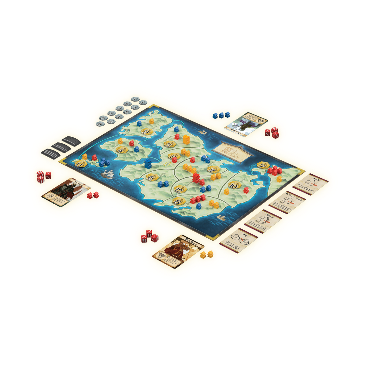 Três dados determinam onde os soldados estão posicionados. As cartas táticas são o seu trunfo para controlar o curso da guerra. Sabedoria e sorte são suas chaves para o domínio.