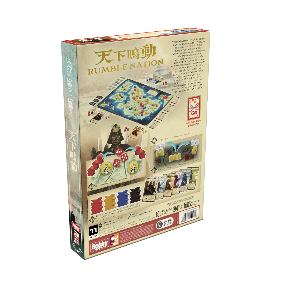 Rumble Nation - lançado pela primeira vez como 天下鳴動 (Tenka Meidou) - é um jogo de dados de controle de área e vencedor do Grande Prêmio do Tokyo Game Market Awards de 2018.