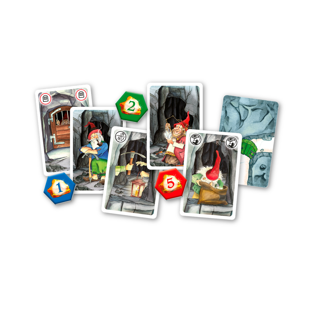 Cartas de ação especiais permitem aos jogadores roubar ouro ou trocar de papel. Novas cartas de túnel incluem pontes, escadas e portas.