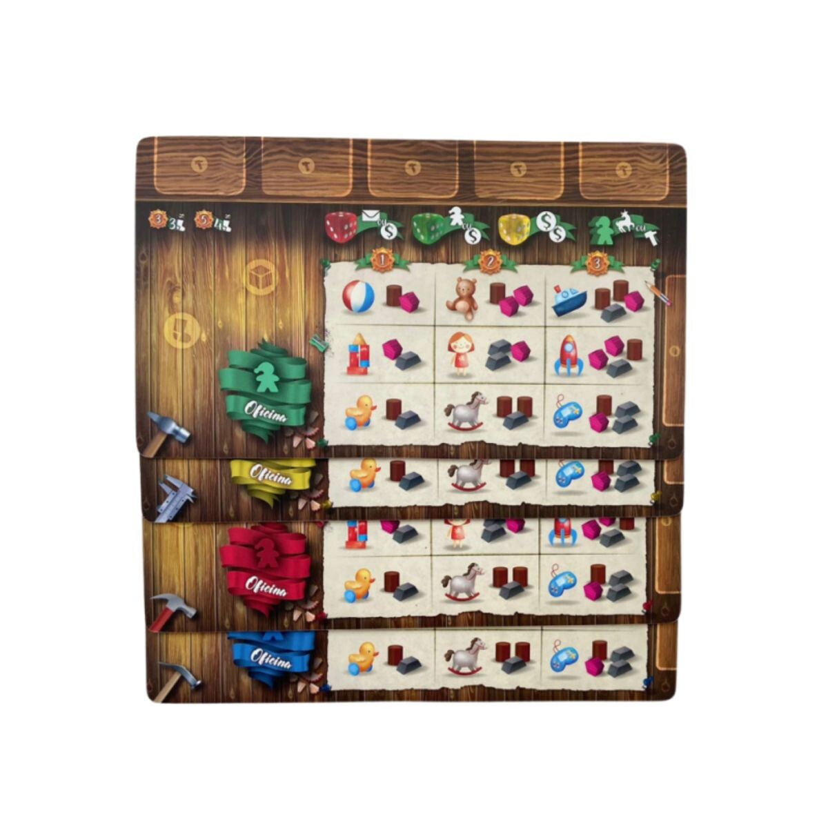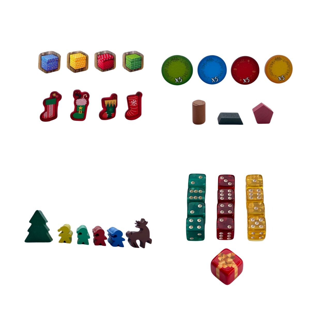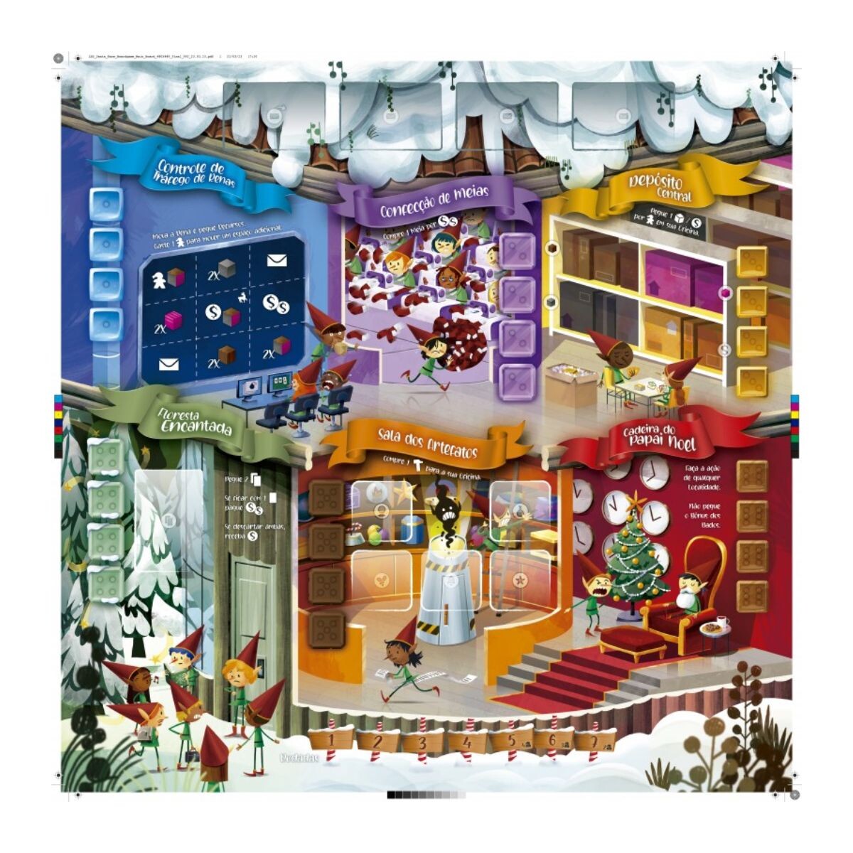 Santa Kaos é um jogo familiar de seleção de dados onde os jogadores deverão coletar recursos, investir em suas oficinas e pedir ajuda de personagens do folclore natalino para completar o maior número de cartas de desejos possível.
