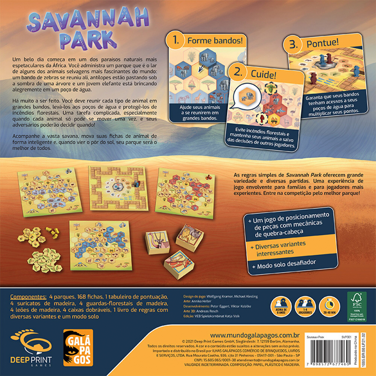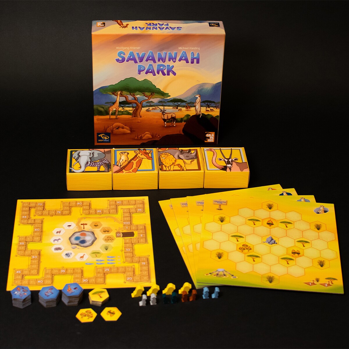 Em Savannah Park, cada um dos jogadores administra seu próprio parque de vida selvagem: uma manada de zebras se reuniu ali, antílopes pastam à sombra de uma árvore e um jovem elefante está brincando alegremente em seu bebedouro.
