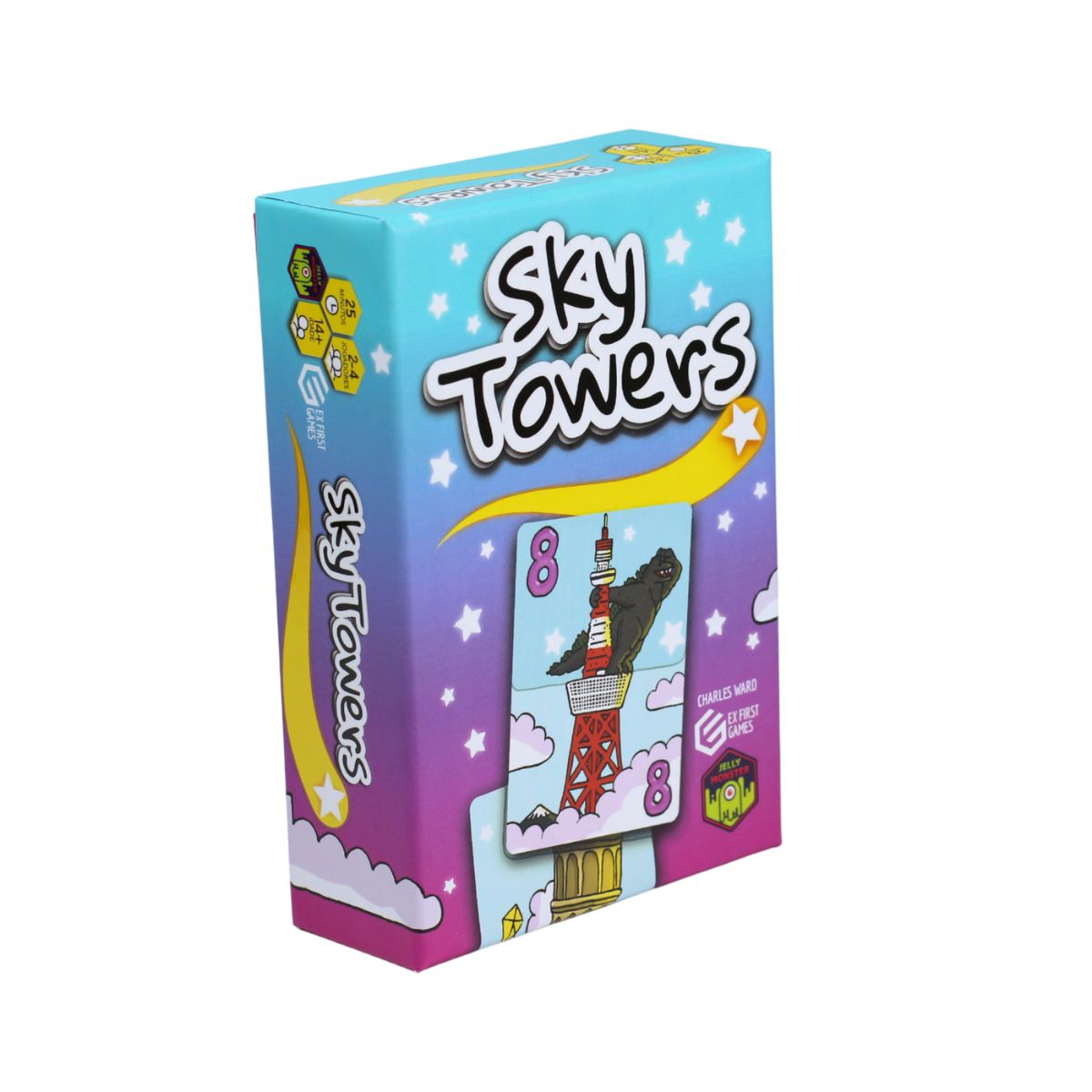 Sky Towers é um jogo de cartas competitivo para a família de 2 a 4 jogadores, sobre a construção de torres que somam 21 com cartas numeradas de 1 a 10. Cada carta tem um efeito ou restrição de posicionamento que ajudará você a ganhar cartas de outros jogadores, acelerar a construção, adicionar às torres do seu vizinho, espiar o baralho, permitir que você construa qualquer carta, etc. No modo de equipe, os efeitos são úteis para trocar cartas entre os membros da equipe.