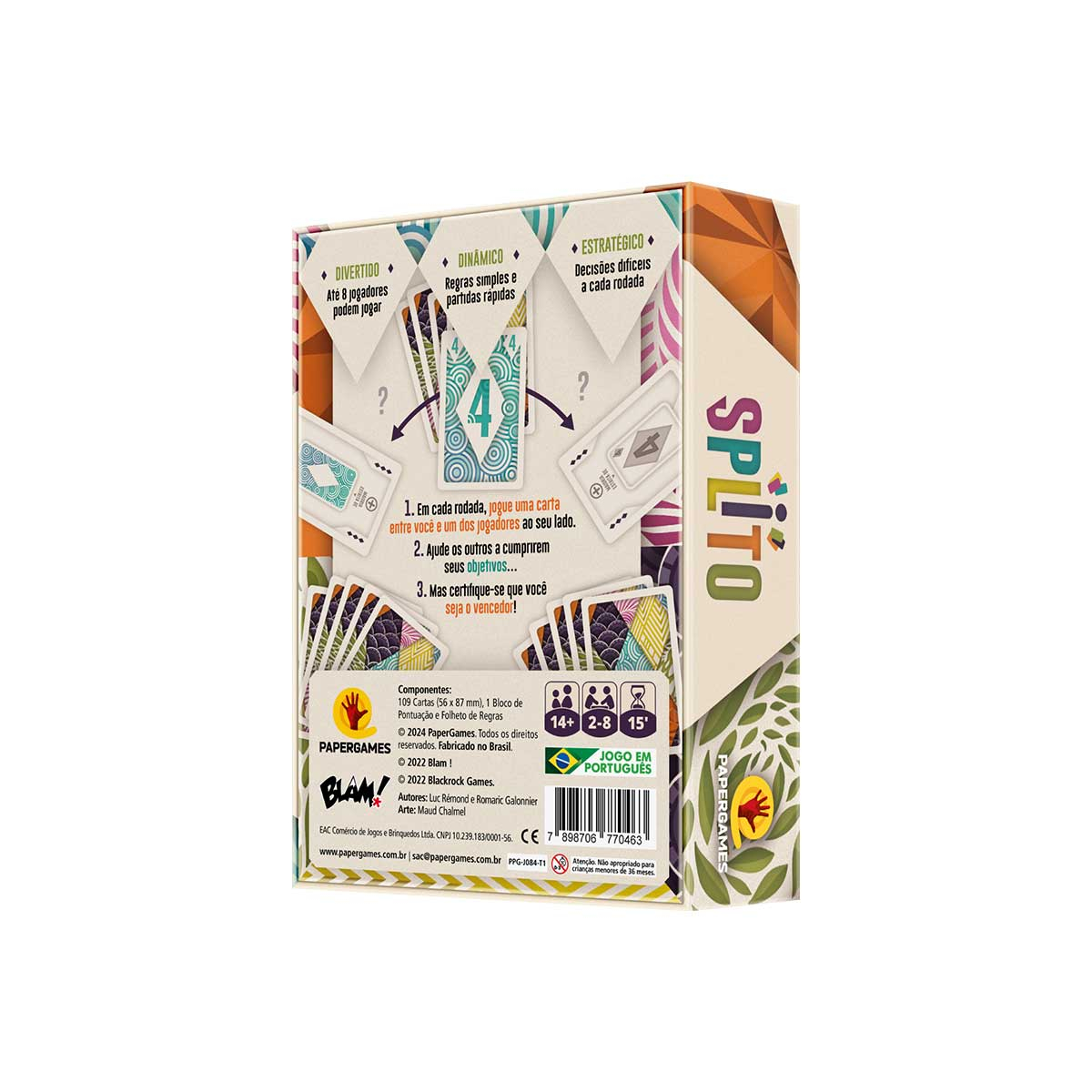 Em Splito, estratégia e cooperação se fundem em uma experiência emocionante! Ao longo de rodadas intensas, os jogadores devem escolher suas cartas com sabedoria, posicionando-as entre si e seus vizinhos para alcançar objetivos comuns.