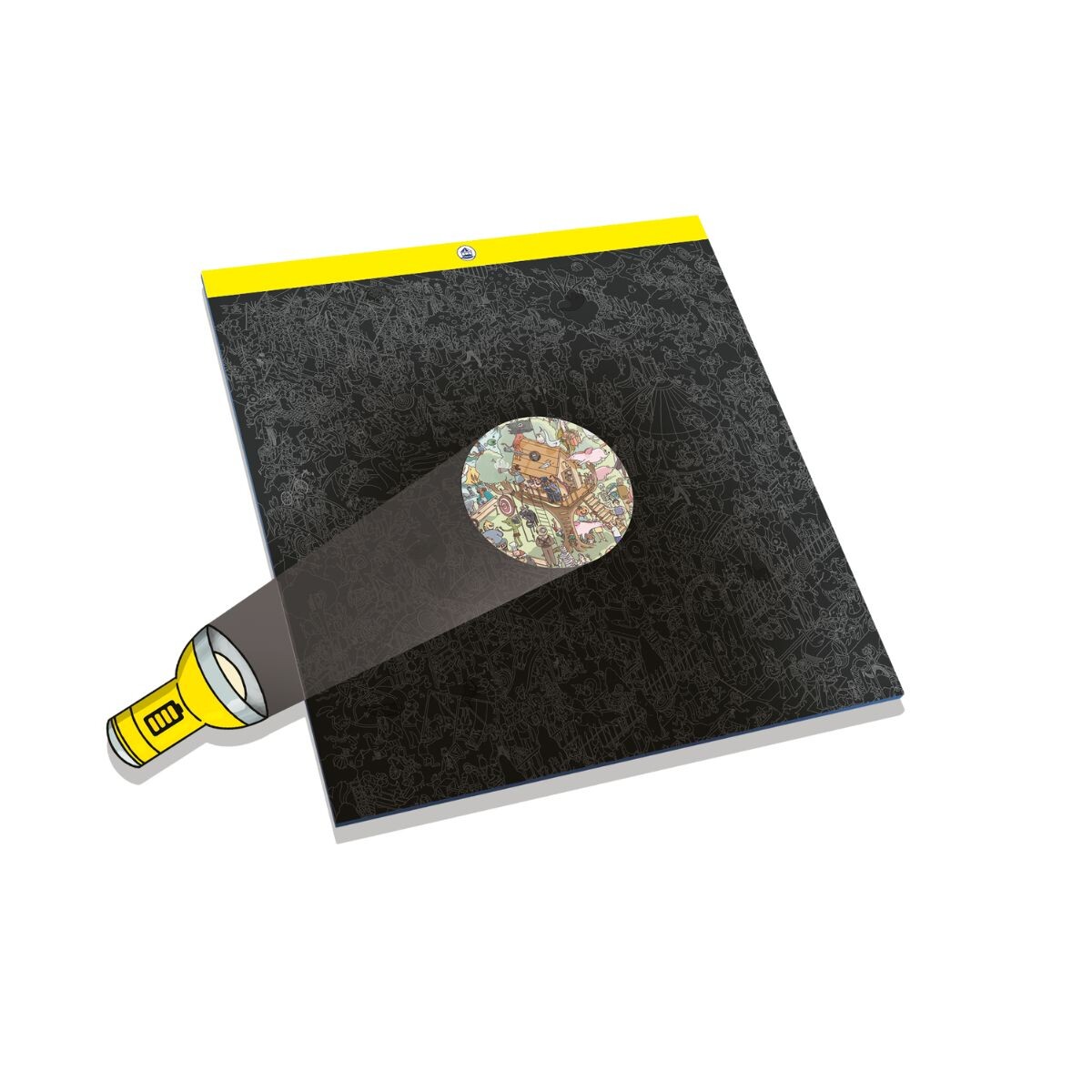 Neste jogo, você e seus amigos utilizam uma lanterna "mágica" para iluminar tabuleiros escuros e repletos de detalhes, buscando personagens e itens escondidos em cenários absurdos e criativos. Cada jogador tem seu próprio tabuleiro com uma camada transparente que revela diferentes partes do cenário, tornando a busca um desafio único a cada rodada.