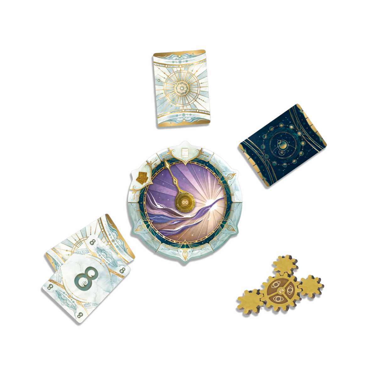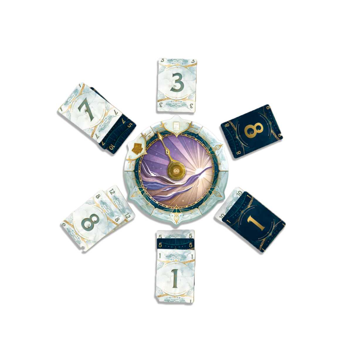 Os jogadores devem posicionar estrategicamente 12 cartas viradas para baixo ao redor de um Relógio, seguindo regras específicas para cada Teste.