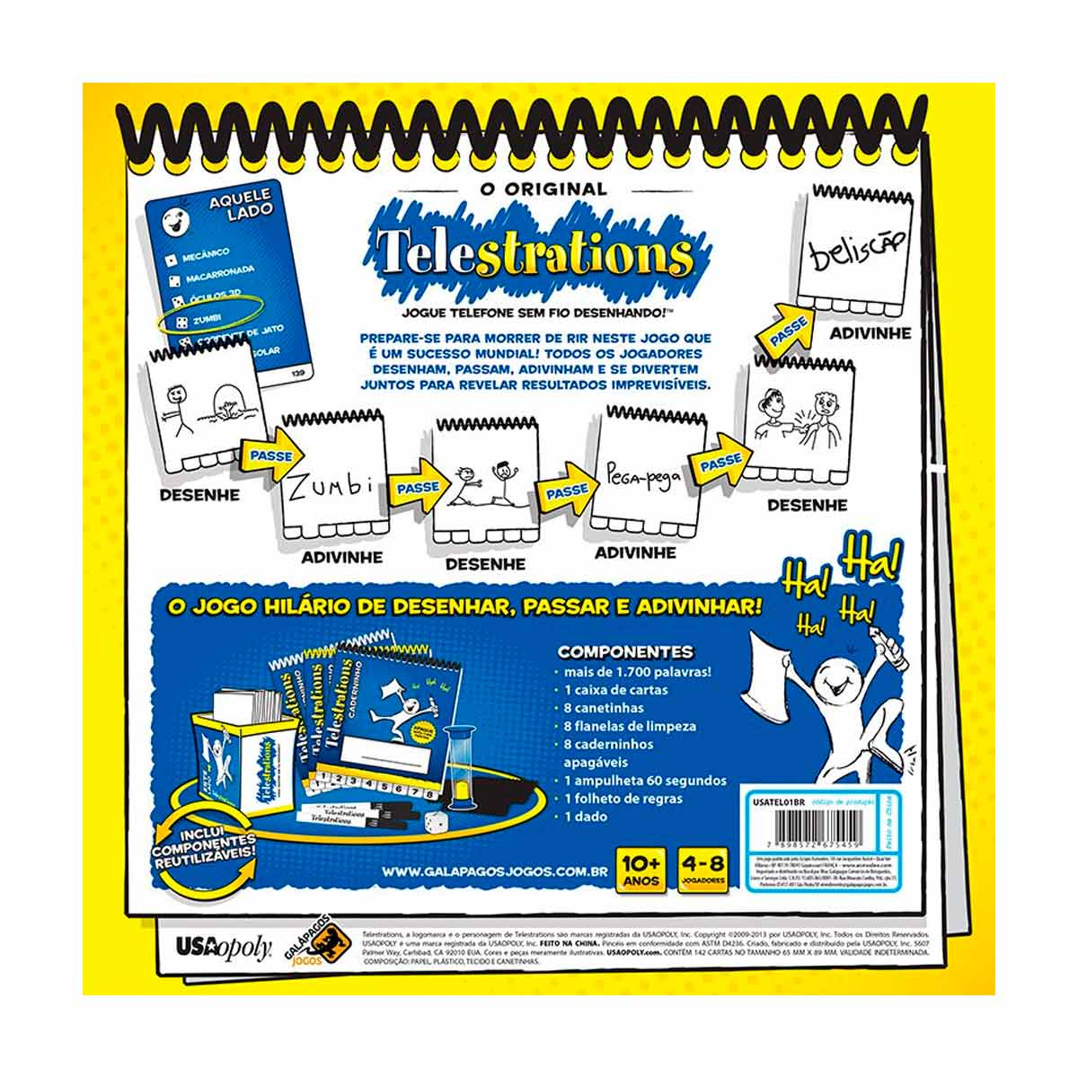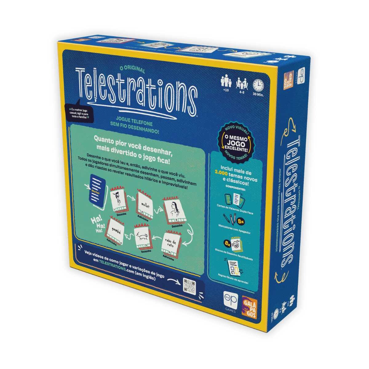 O “Telefone sem fio” transformado em jogo de tabuleiro! Escandalosamente divertido Telestrations manterá sua família e amigos entretidos e rindo! Desenhe o que você vê e, em seguida, adivinhe o que outros desenharam para obter resultados hilariantes e imprevisíveis.
