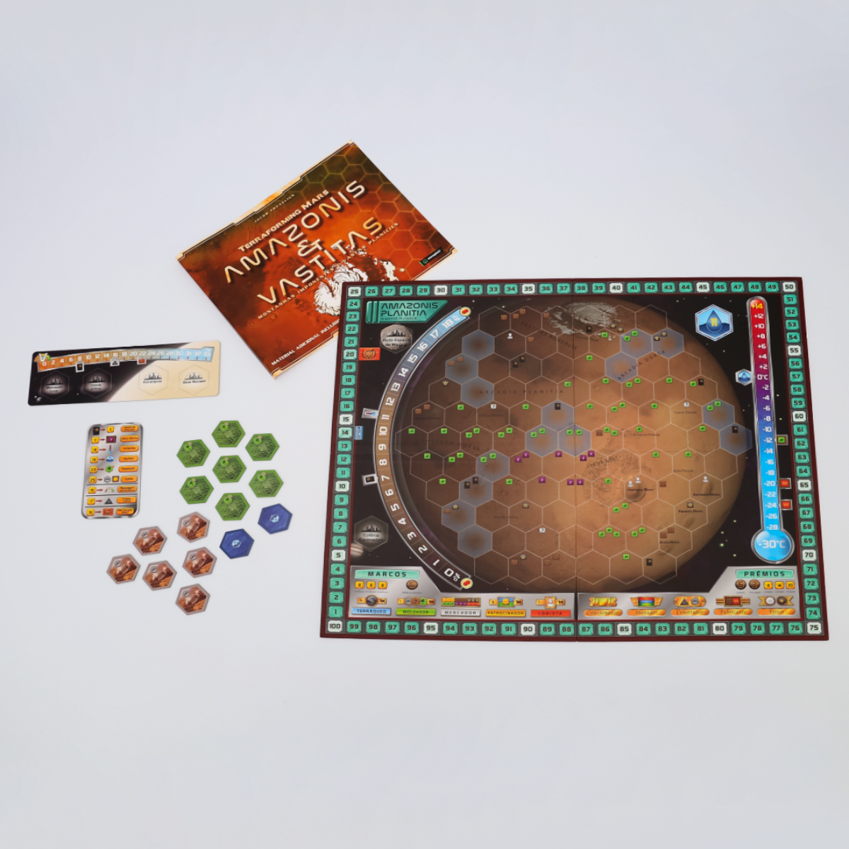Expanda seus horizontes em Terraforming Mars: Amazonis & Vastitas, com dois novos mapas para terraformar Marte. No gigante mapa de Amazonis e Vastitas.