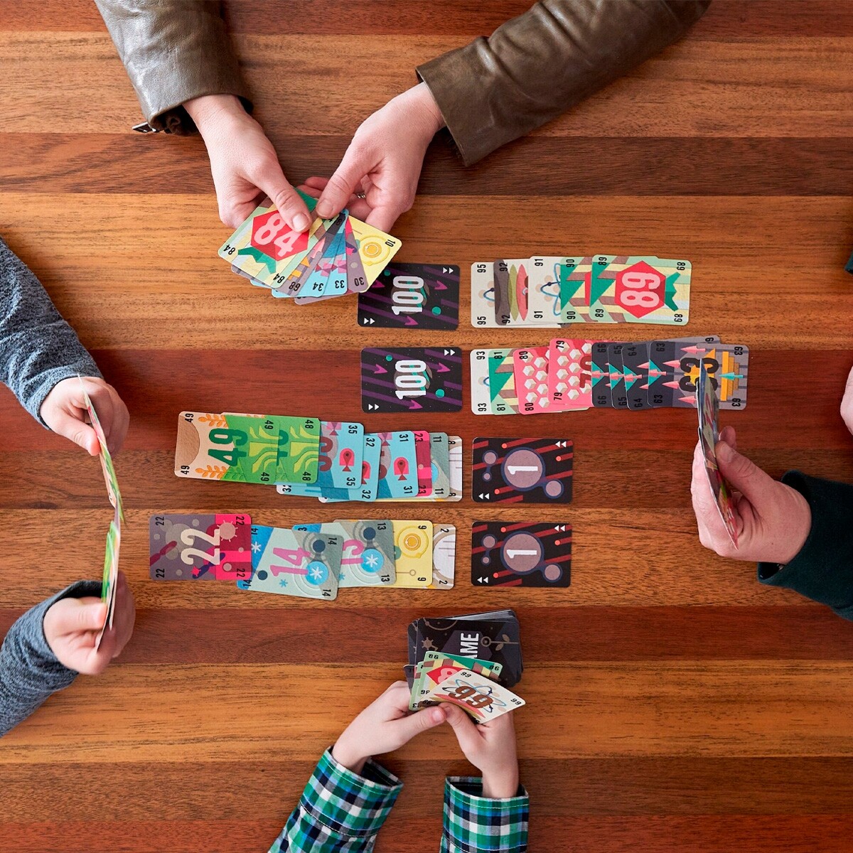 Diferente de The Mind, você pode avisar os outros para não jogar em tal pilha de descarte – mas nada garante que vão te ouvir (ou que você esteja certo)! É permitido falar qualquer coisa, menos revelar o número exato de suas cartas. Teste a sintonia do seu grupo de amigos e descarte todas as 98 cartas, nas ordens corretas, sem deixar sobrar nenhuma!