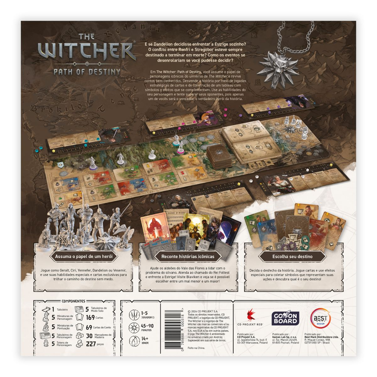 Competitivo para 1 a 5 jogadores, cada participante assume o papel de Geralt, Yennefer, Ciri, Dandelion ou Vesemir, enfrentando dilemas morais e decisões profundas que moldam o rumo da trama. A mecânica central é o deck-building, combinando estratégia e narrativa em um sistema que evolui ao longo de três rodadas.