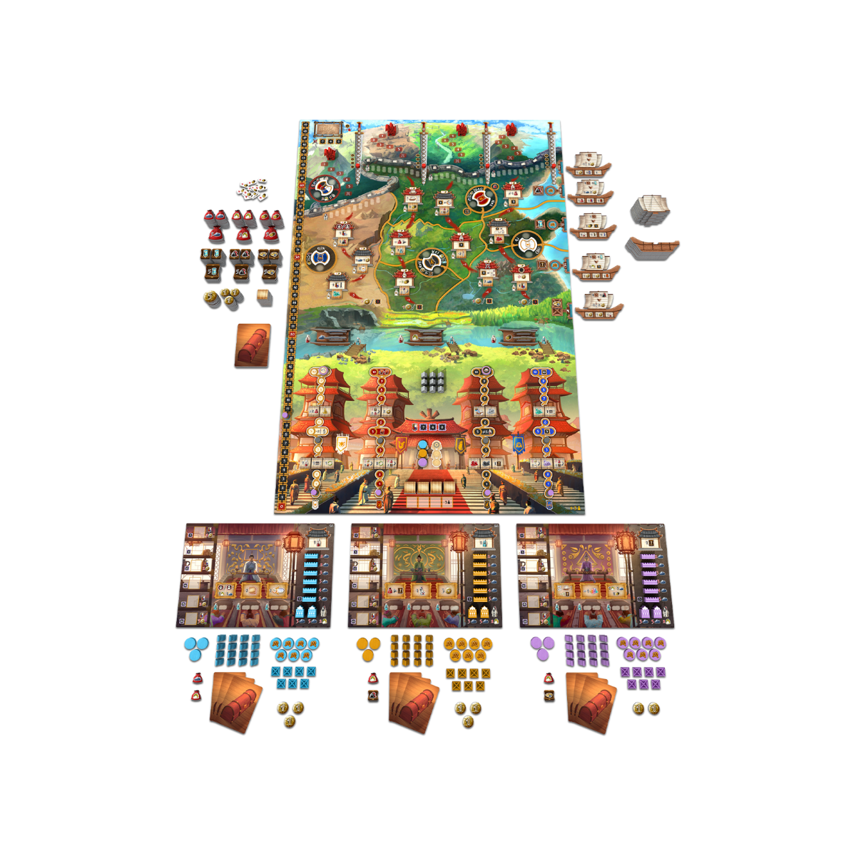 O jogo dura quatro rodadas, nas quais você instala Governadores nas regiões, fortalece o poder das casas governantes rivais e, com isso, conquista seu favor. Você também vende mercadorias para navios mercantes que navegam pelas costas chinesas para obter riquezas e diversos outros benefícios. No entanto, você não deve esquecer dos guerreiros nômades, que representam uma ameaça constante nas fronteiras do norte dos sete reinos. Por isso, é necessário treinar soldados e construir muros e torres para enfraquecer os invasores e proteger seus interesses, ganhando prestígio no processo.