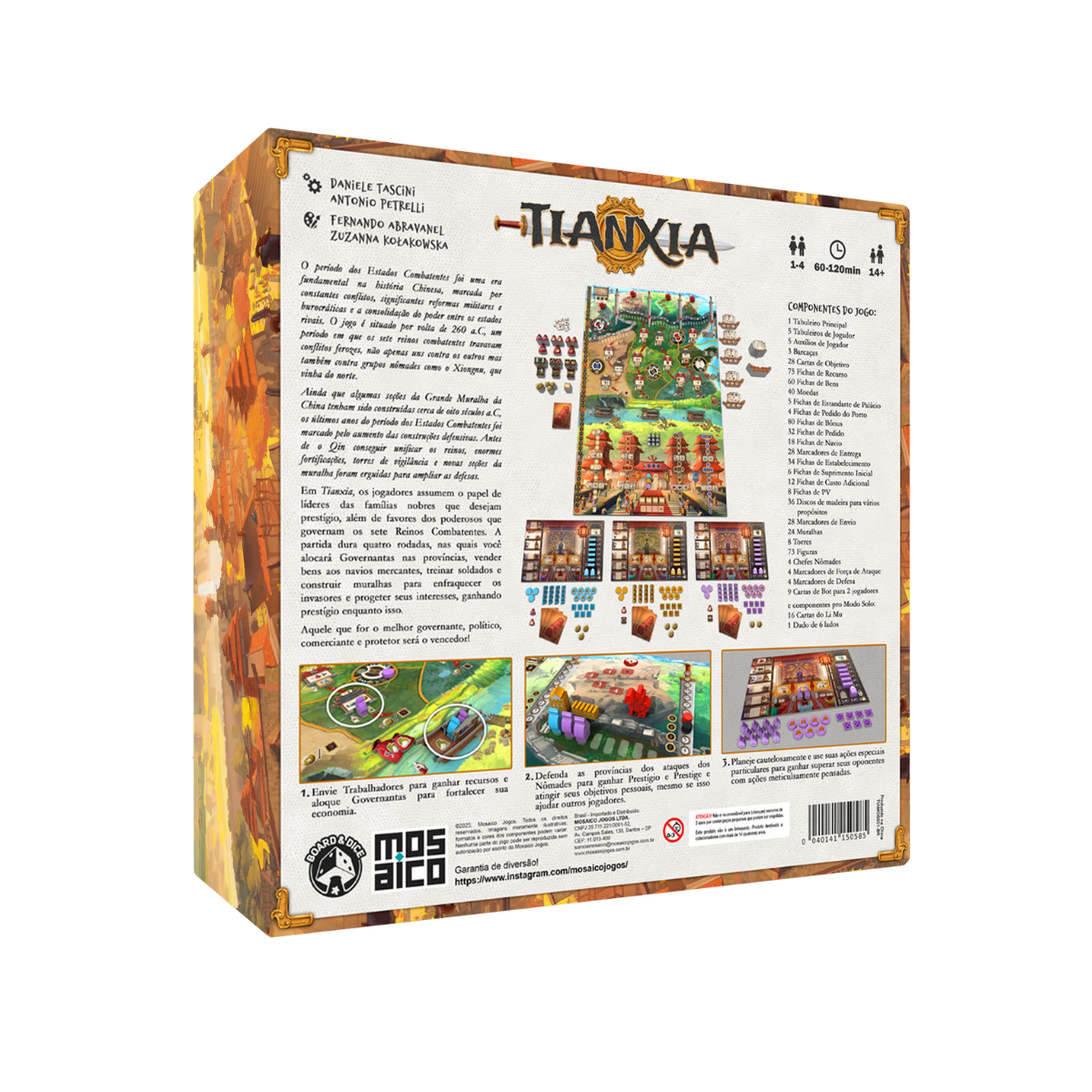 Em Tianxia, os jogadores assumem o papel de líderes de famílias nobres que buscam conquistar prestígio, além de favores dos poderosos governantes que comandam os sete Reinos Combatentes.